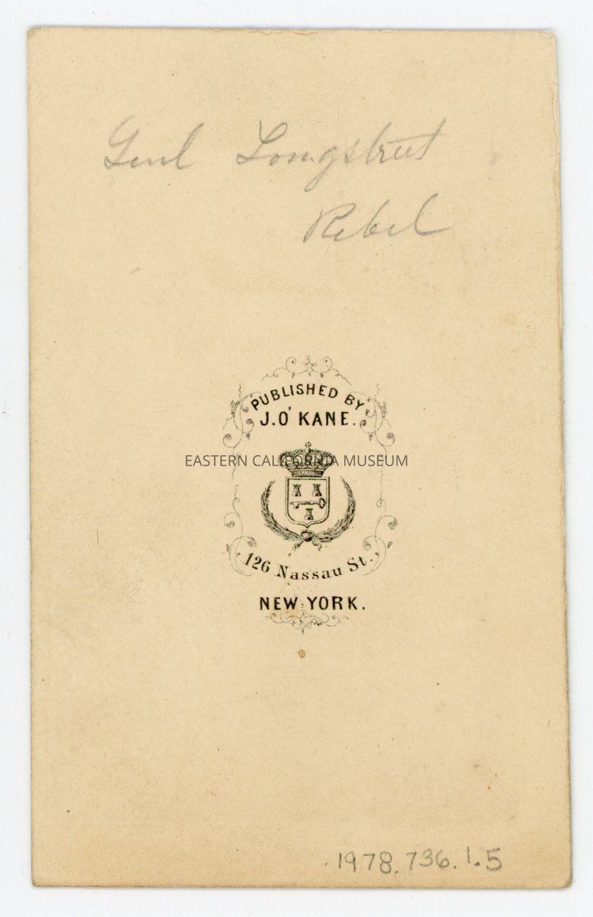 Written in pencil on reverse: Gen'l Longstreet rebel.Collection
