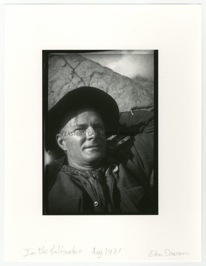 B/W art print on heavy bond paper of Norman Clyde in the Palisades, August 1931. The original photo was taken by Glen Dawson.