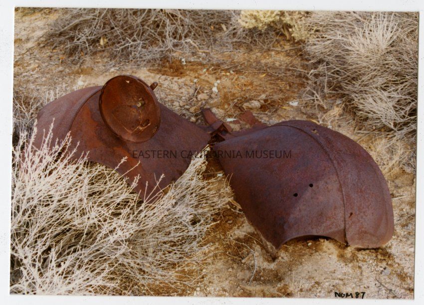 Color photo of the remains of a vehicle abandoned at Manzanar.Photograph Details