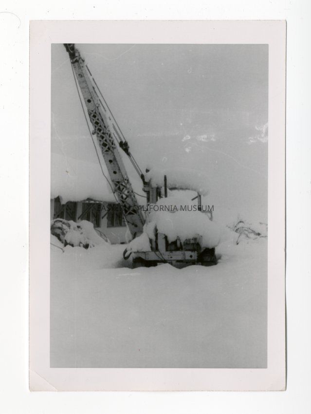 Photo of a crane or other large equipment buried in snow.
