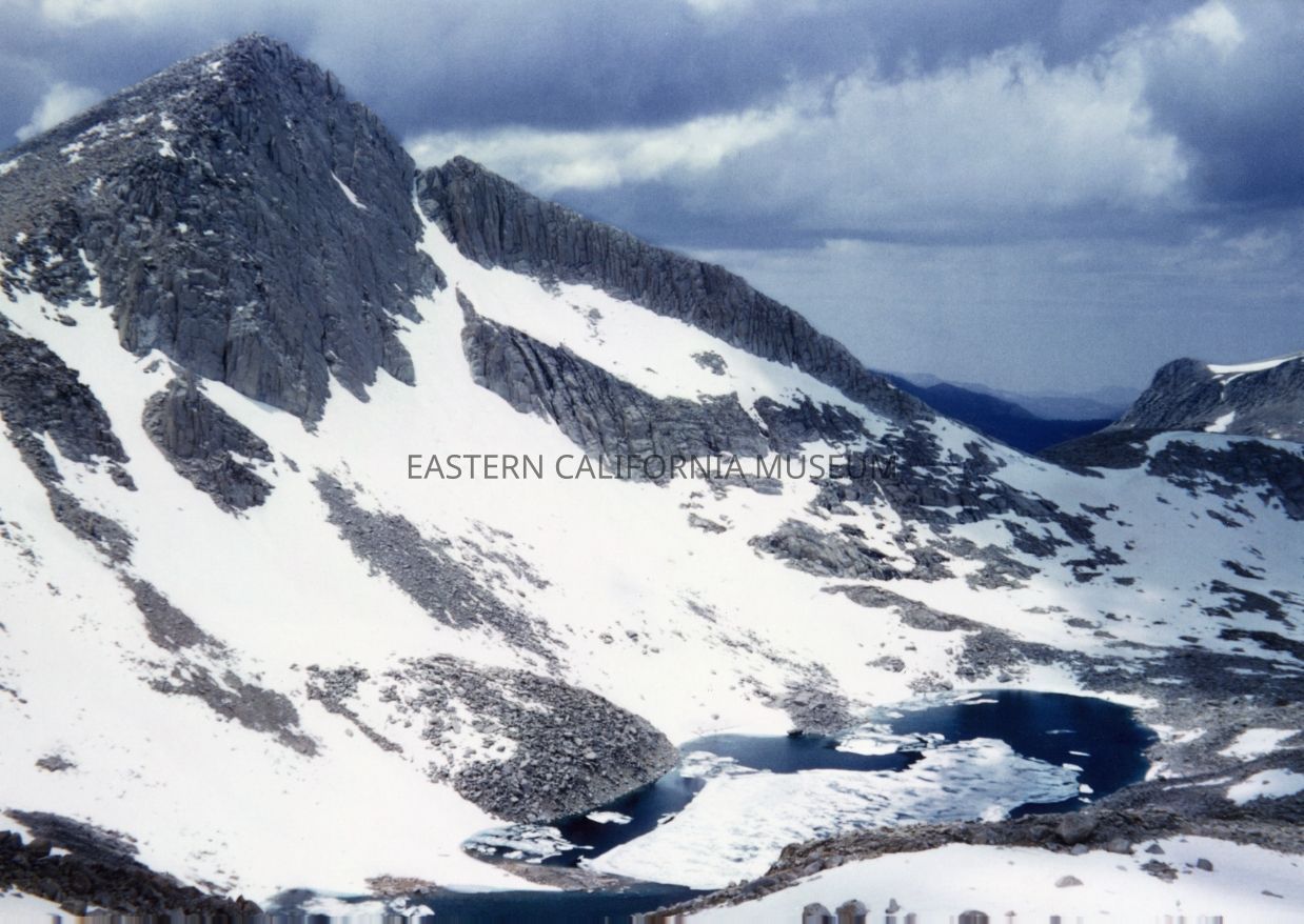 Color photo of the southern Sierra Nevada crest with tarn lake taken by Bob Alan Rowe.