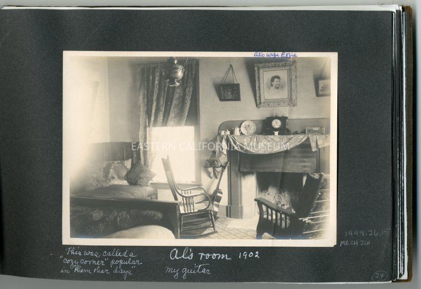Caption on album page: Al's room, 1902. This was called a "cozy corner" popular in "them thar days." My guitar.Collection
