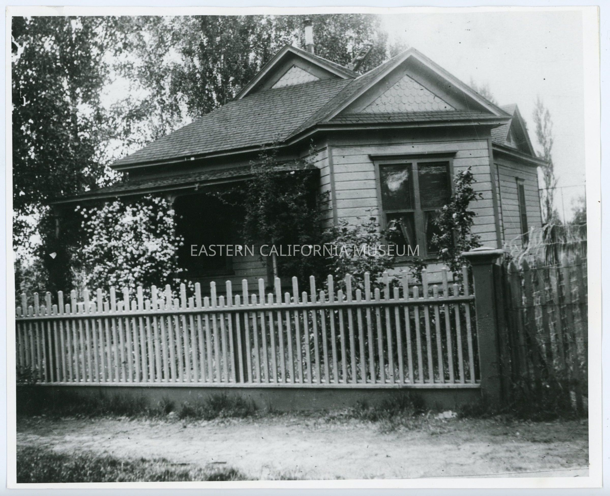 Copy of a photo of a house that is identified as the W. A. Chalfant home on Academy Ave. in Bishop, taken in 1903. It differs from 1969.52.7 (taken in the mid 1890s) in that a fence has been built around it.