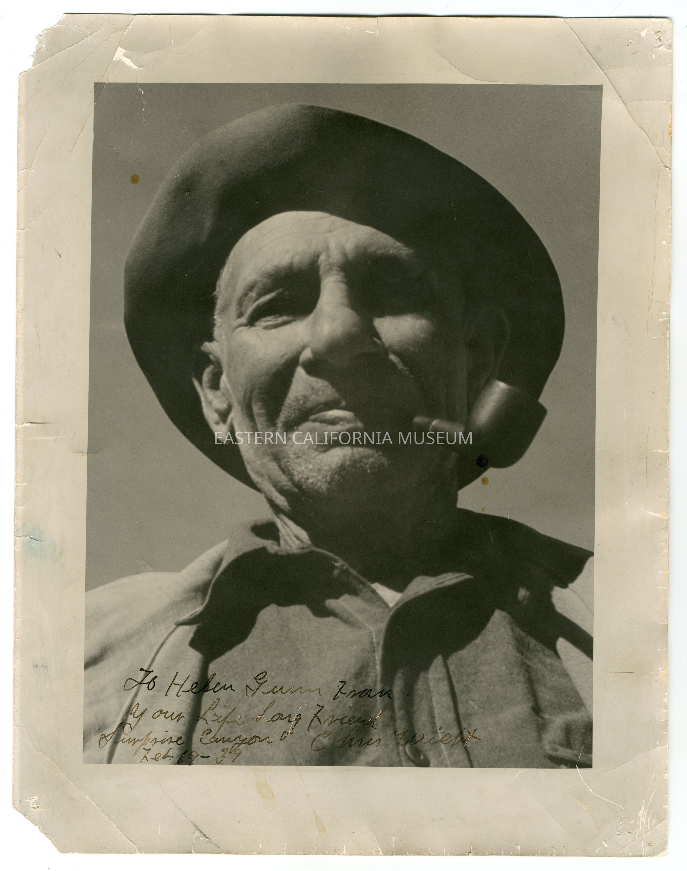 Written on bottom in black ink: To Helen Gunn from your life long friend Chris Wicht. Suprise Canyon Feb. 19, '39.