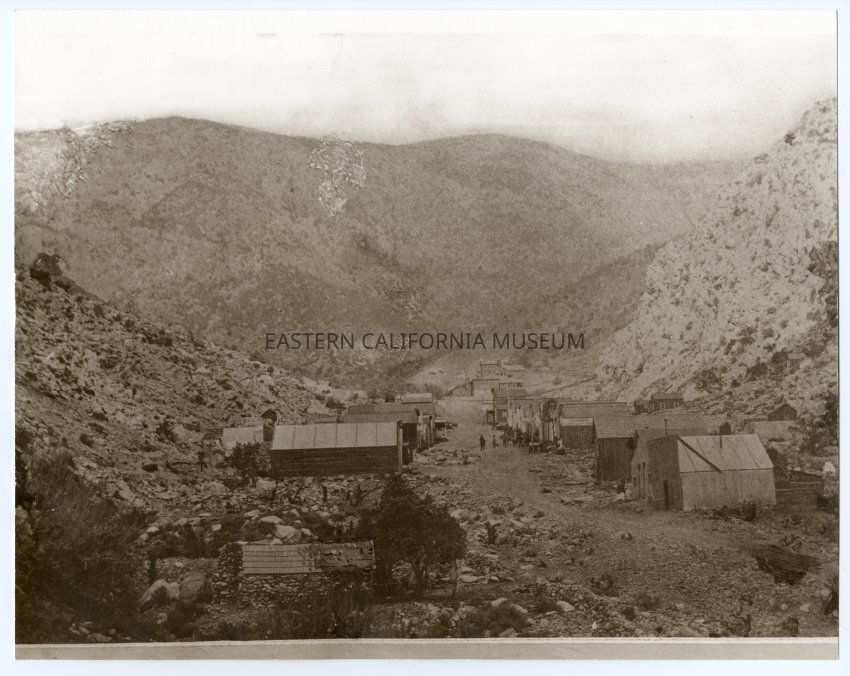 Copy of a photograph of Panamint taken in 1875 showing George's General Store, owned by George Zobelein, a German immigrant who later went to Los Angeles and started the Eastside Brewery. His wife, Brigida Graf, is mentioned in the book Silver Stampede. She sold hats and ribbons to the Panamint ladies. Donor says that George Zobelein took the photo.Photograph Details