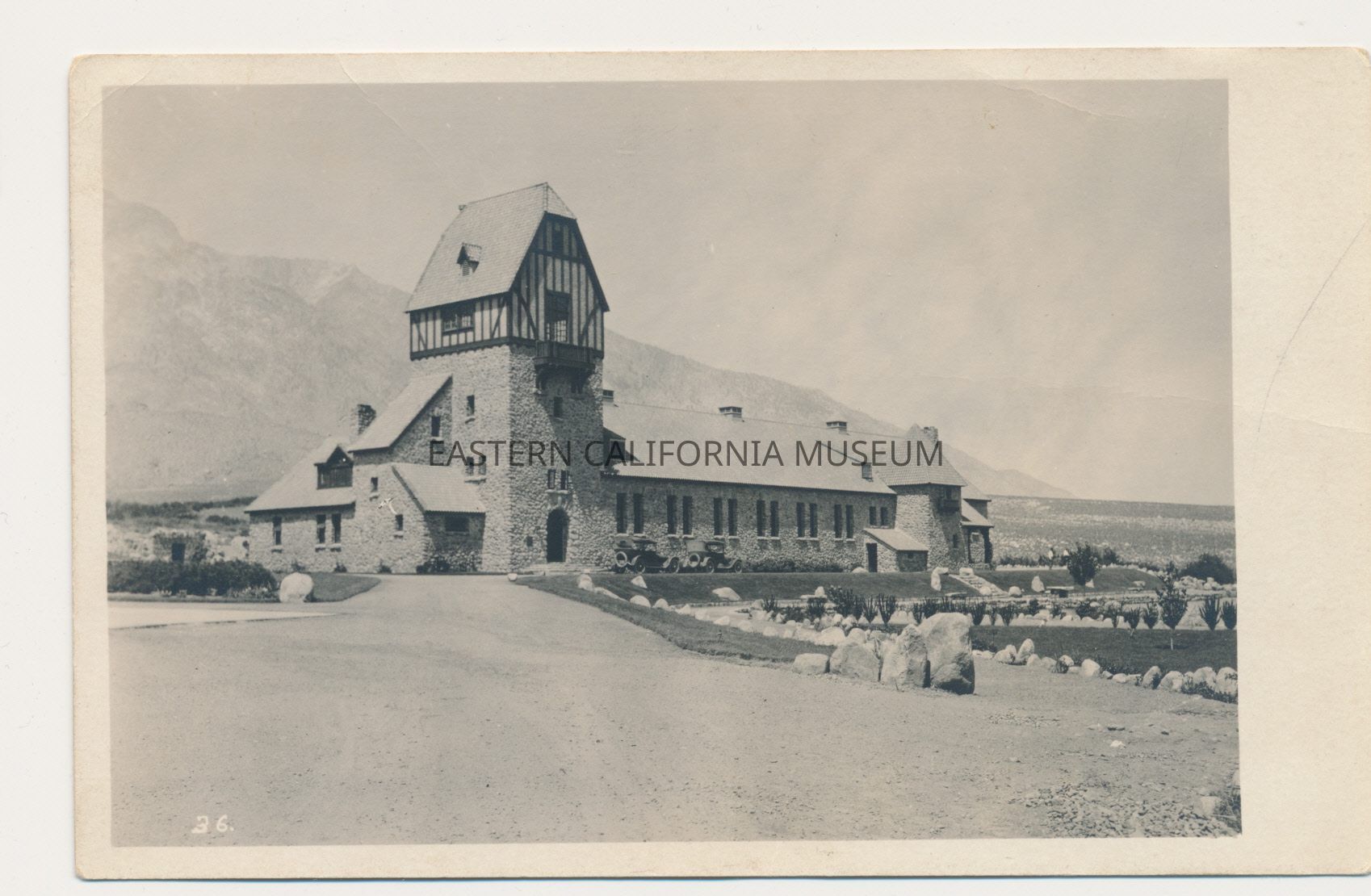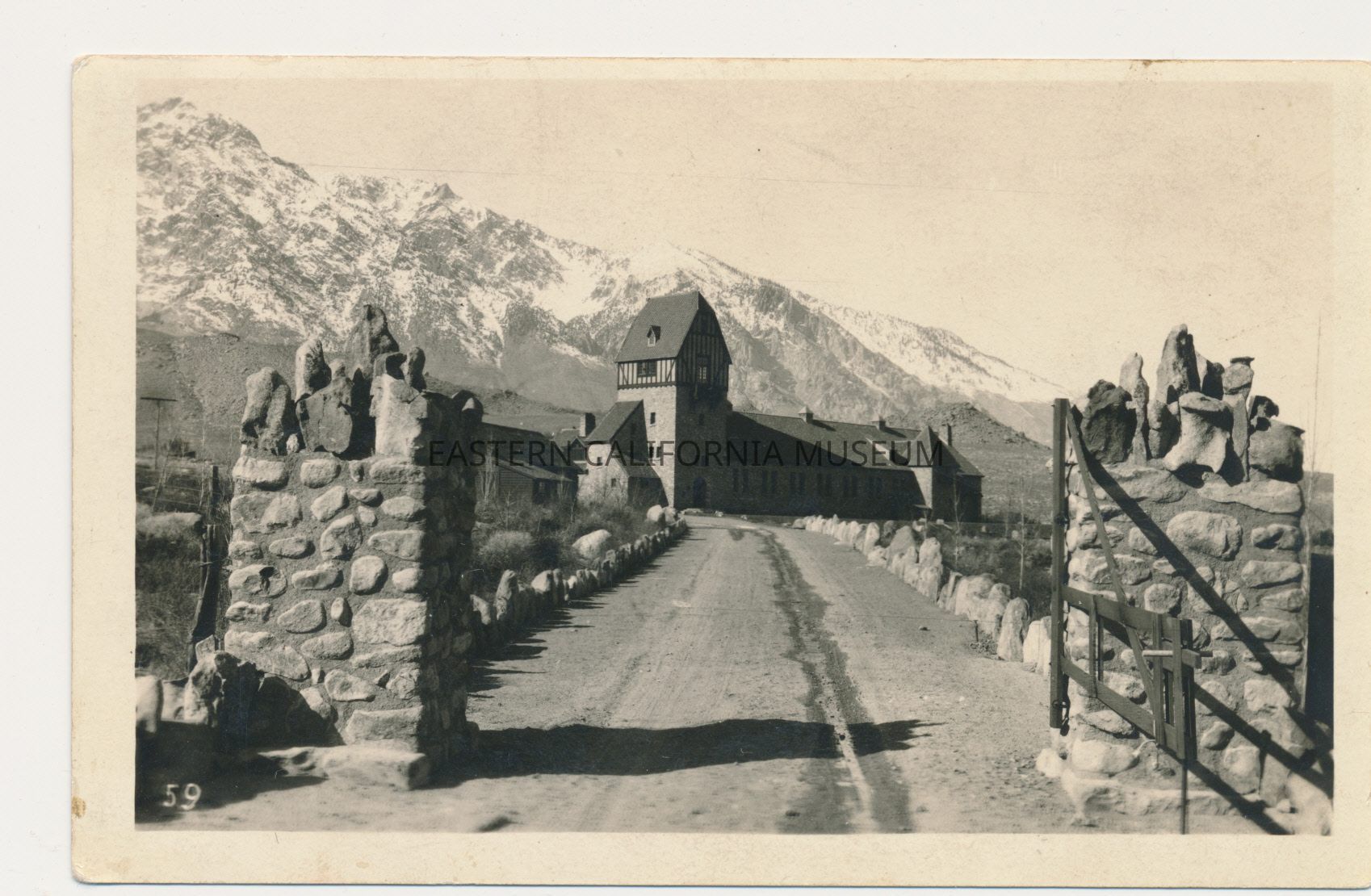 1991.13.1.226--#59 in lower left corner. View includes gate and road up to building.Photograph Details