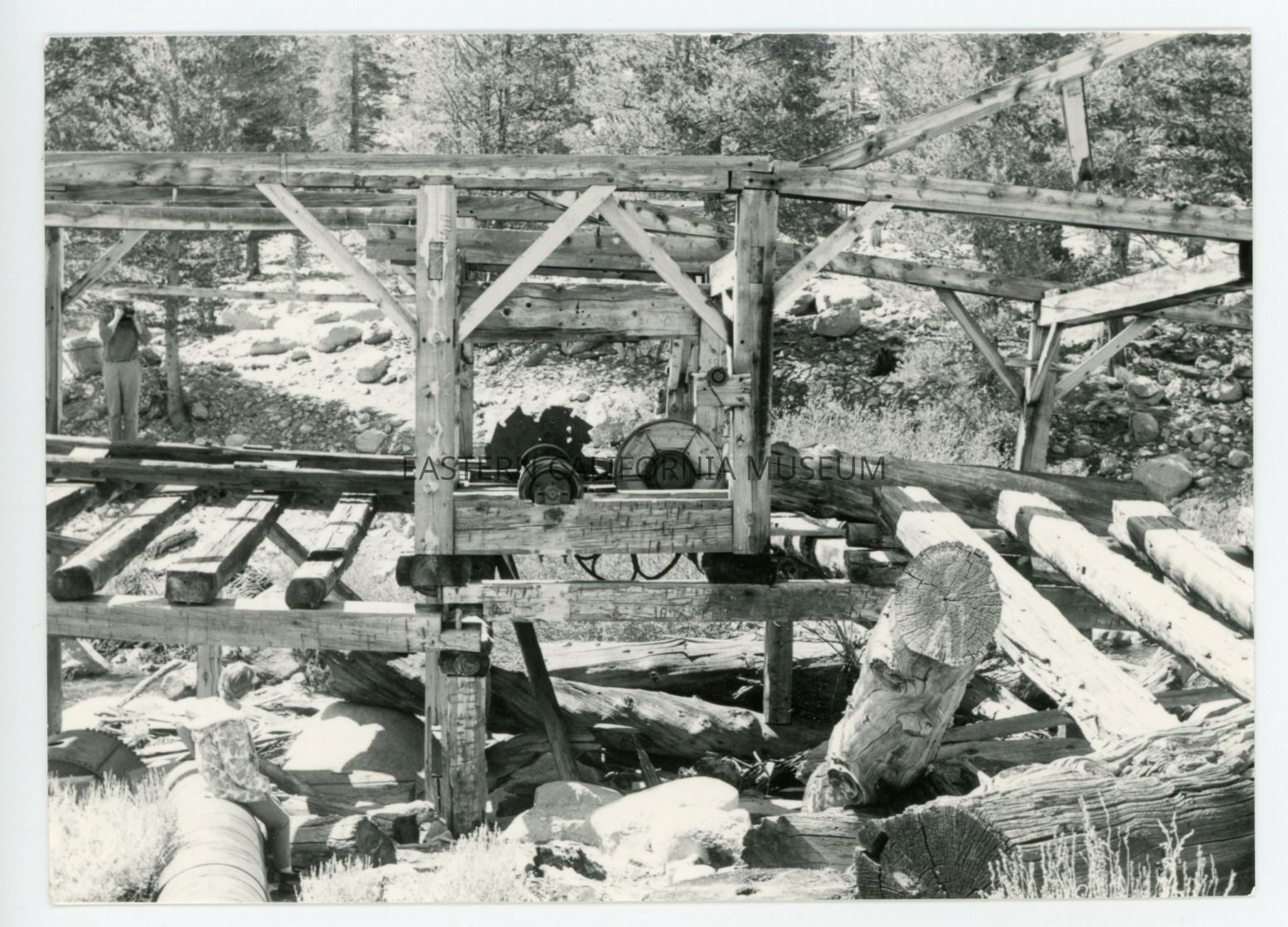 Photo of the Cottonwood Sawmill. There are a couple people on the left side of the photo.