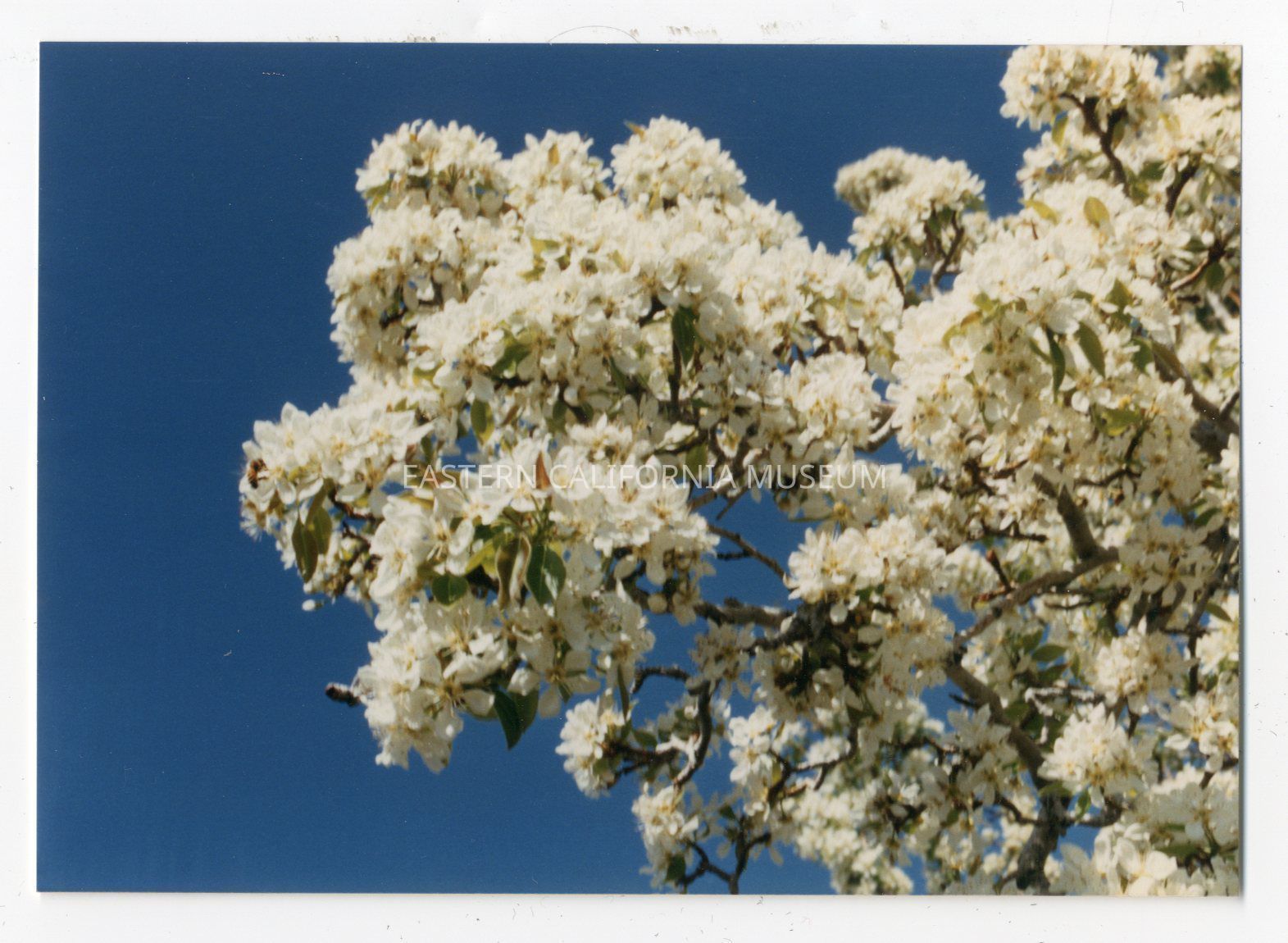 Close-up color photo of white blossoms on a tree.