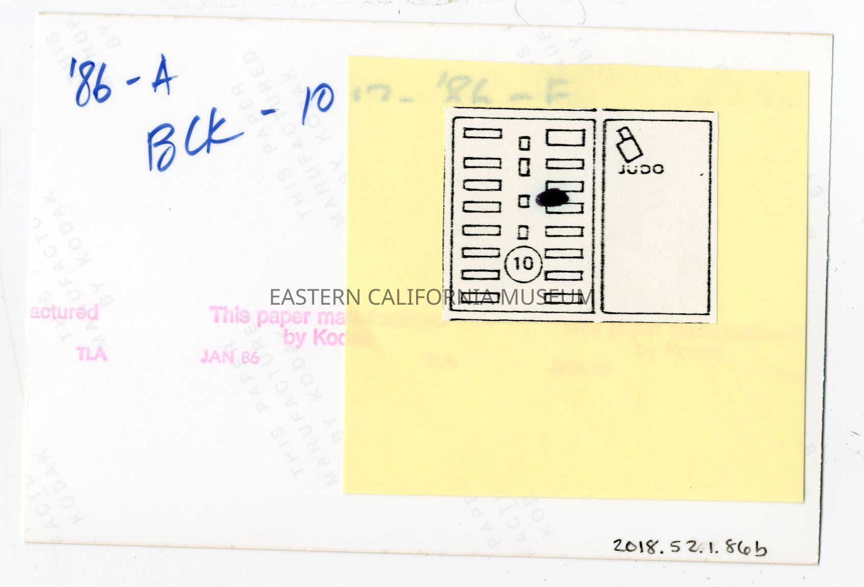 Written in blue ink on reverse: '86-A blk. 10.