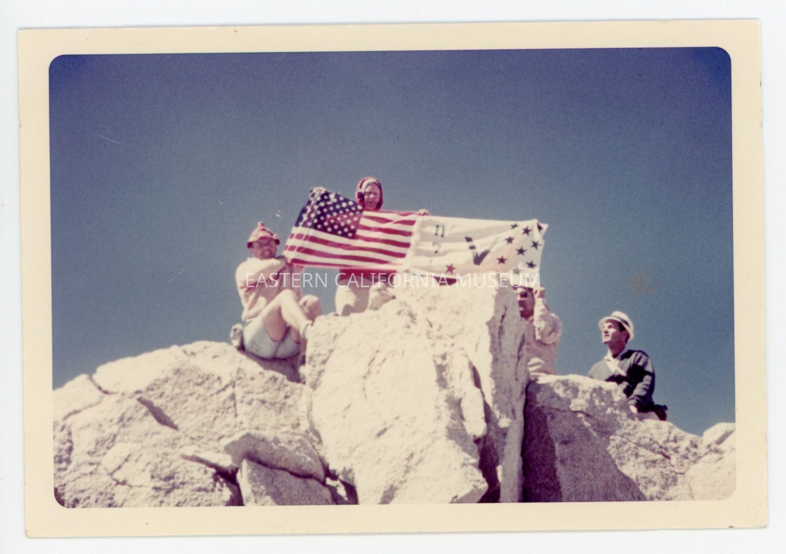 Written in pencil on reverse: Sept. 5, 1965. Flag unfurling dedication, Mt. Versteeg, 13,470, Tyndall Range.Collection