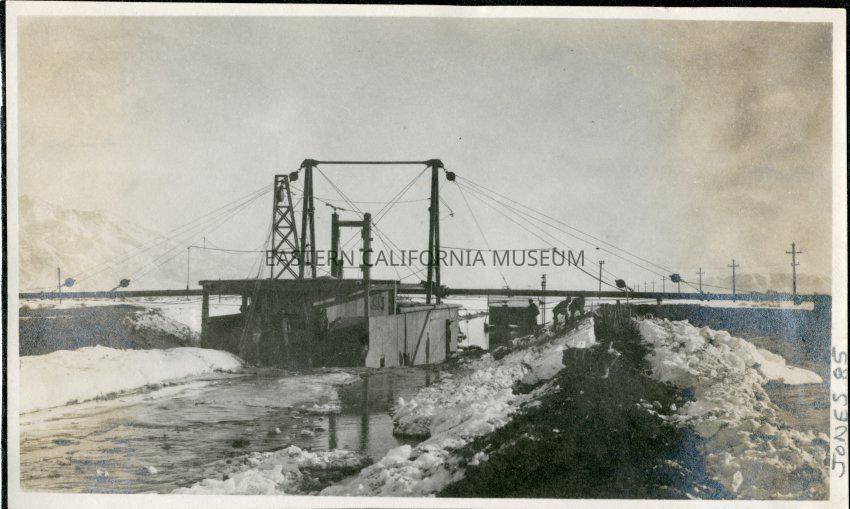 Suction dredge breaking up ice in L.A. Aqueduct channel in the Owens Valley.