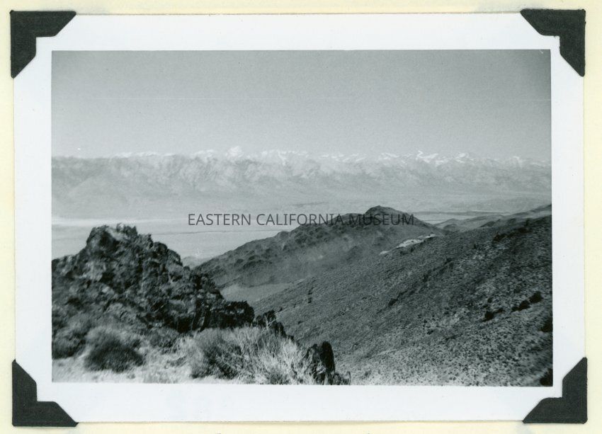 Photo taken looking northwest from the Yellow Grade Road to Cerro Gordo towards Lone Pine and Mt. Whitney. Photo taken in 1956 by W. P. Payne.