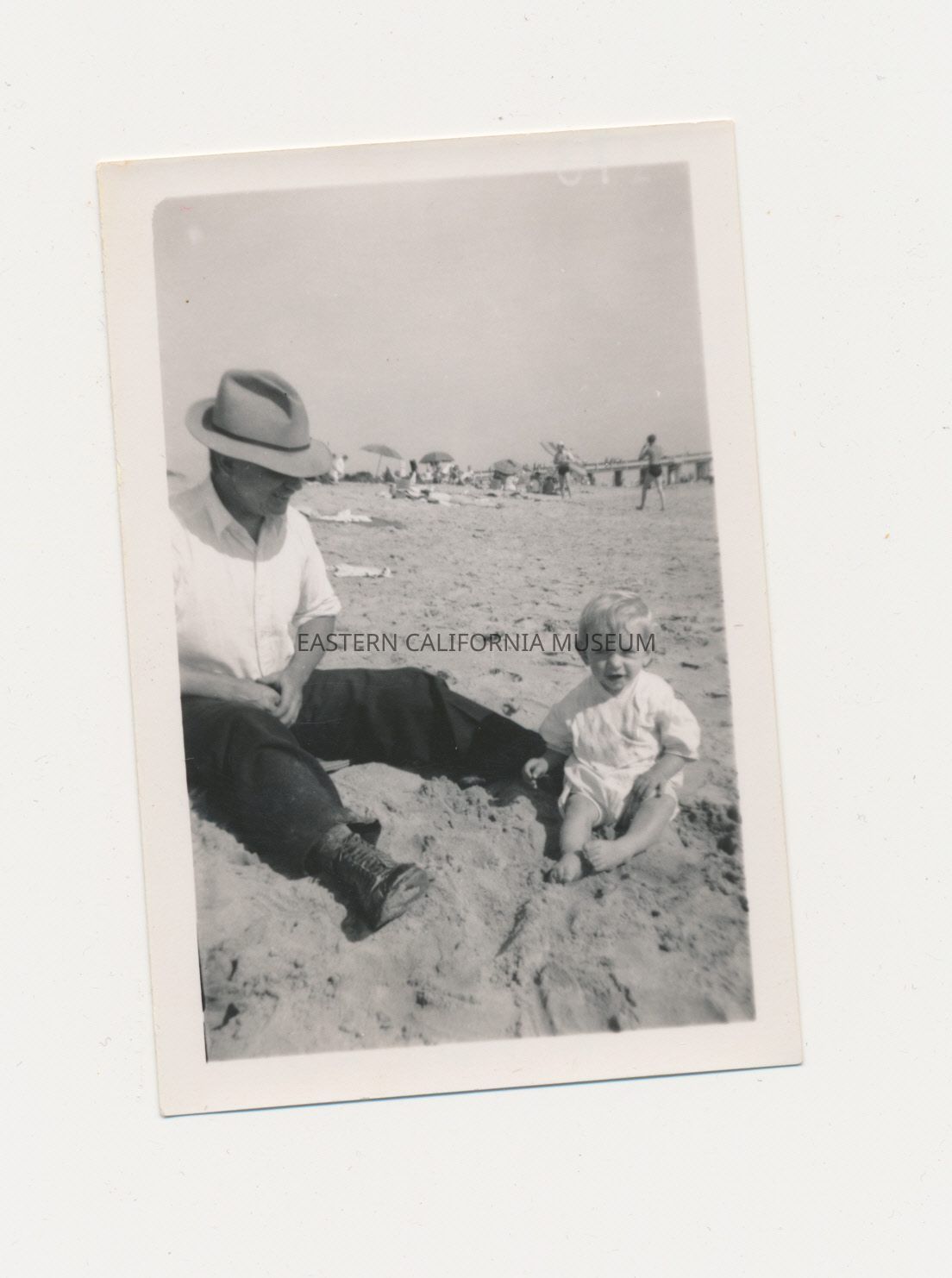1991.13.1.55--Taken on a beach. Written in pencil on reverse: "William David Drew, (Herbert) David Drew, about 1 year."Collection
