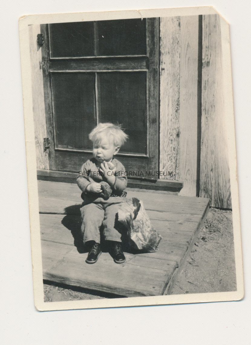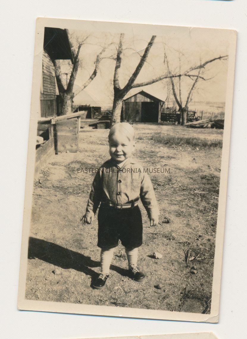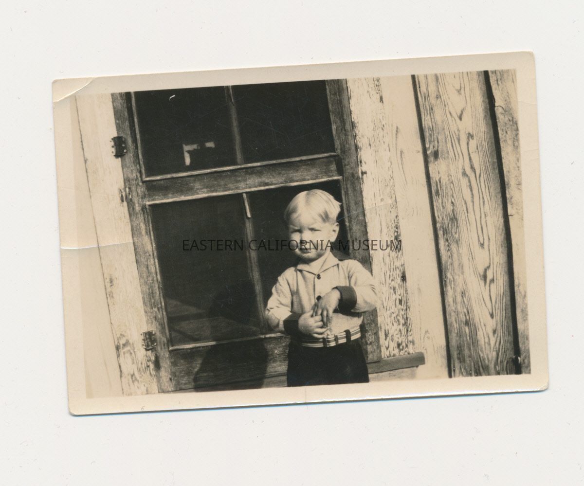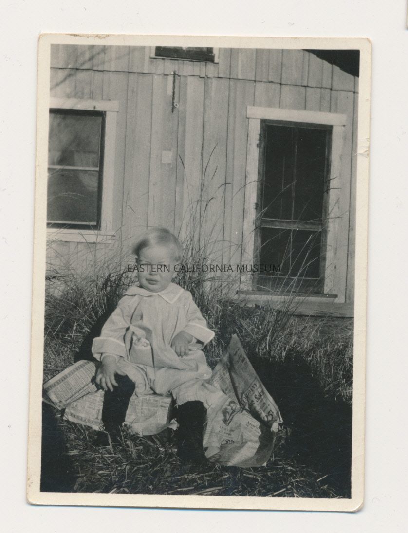 1991.13.1.136--Marvin Donald Smith sitting on newspapers, 1925, Gernigan Ranch.