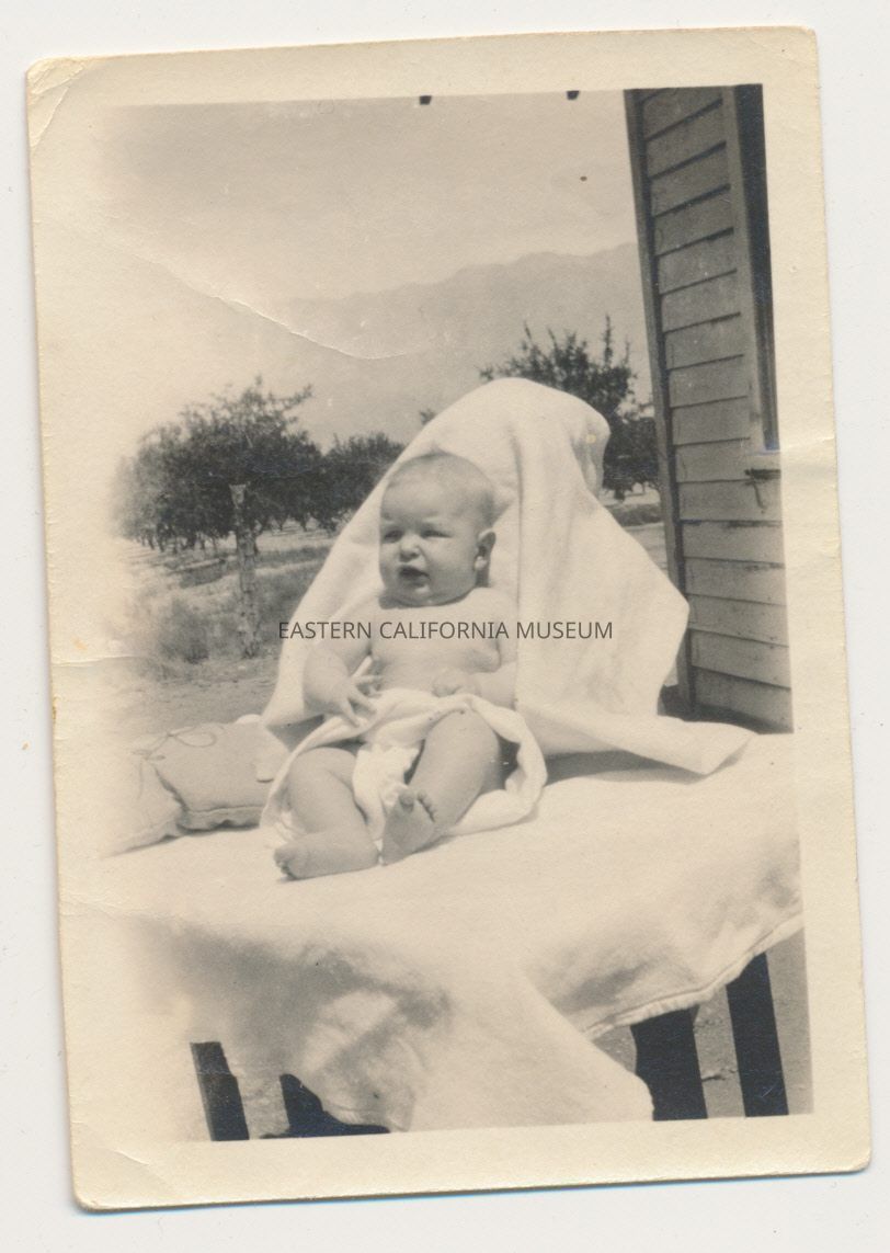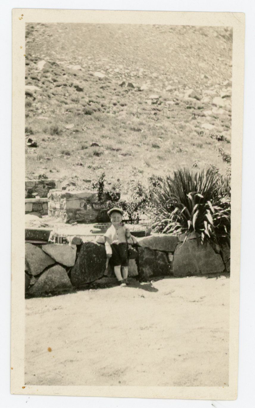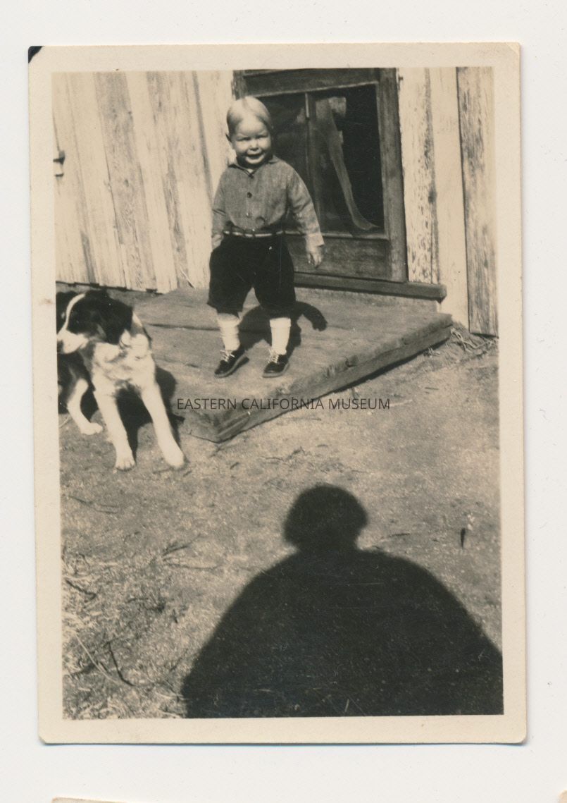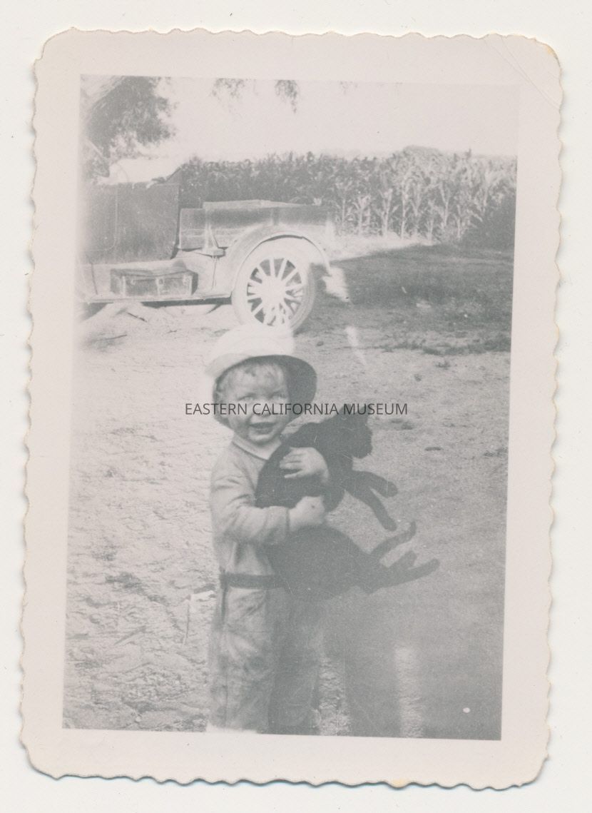 1991.13.1.136--Marvin Donald Smith sitting on newspapers, 1925, Gernigan Ranch.
