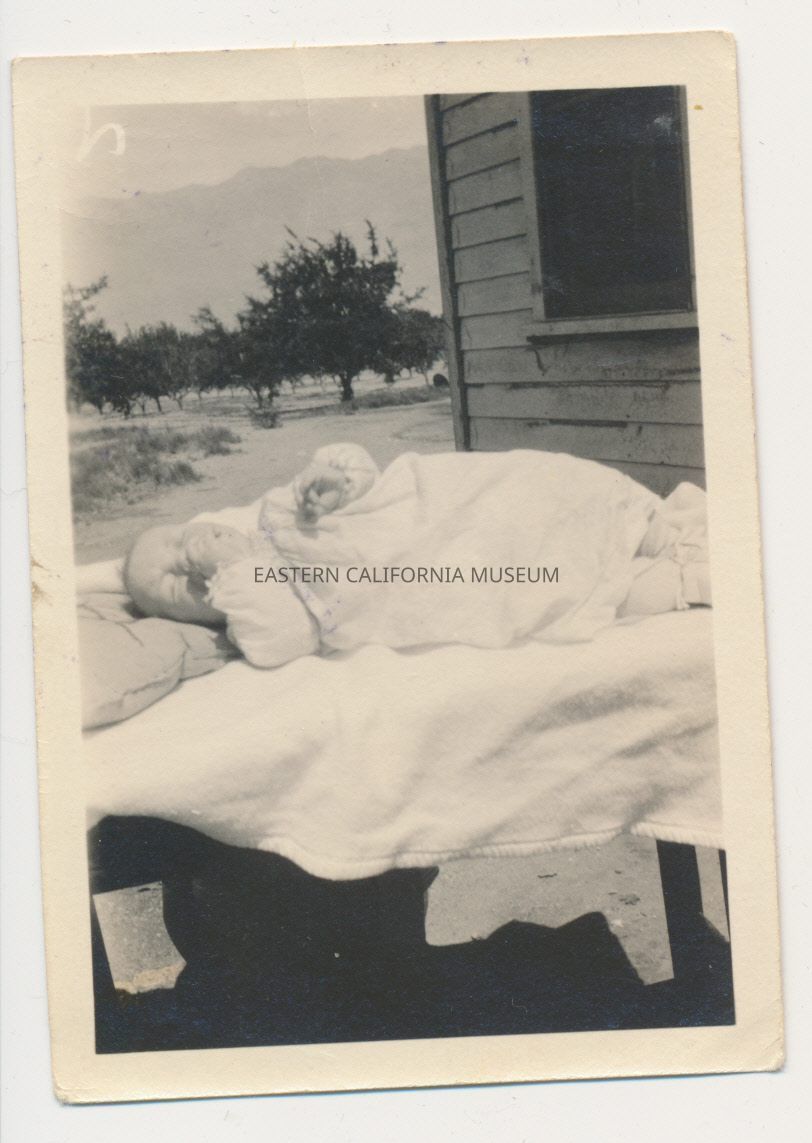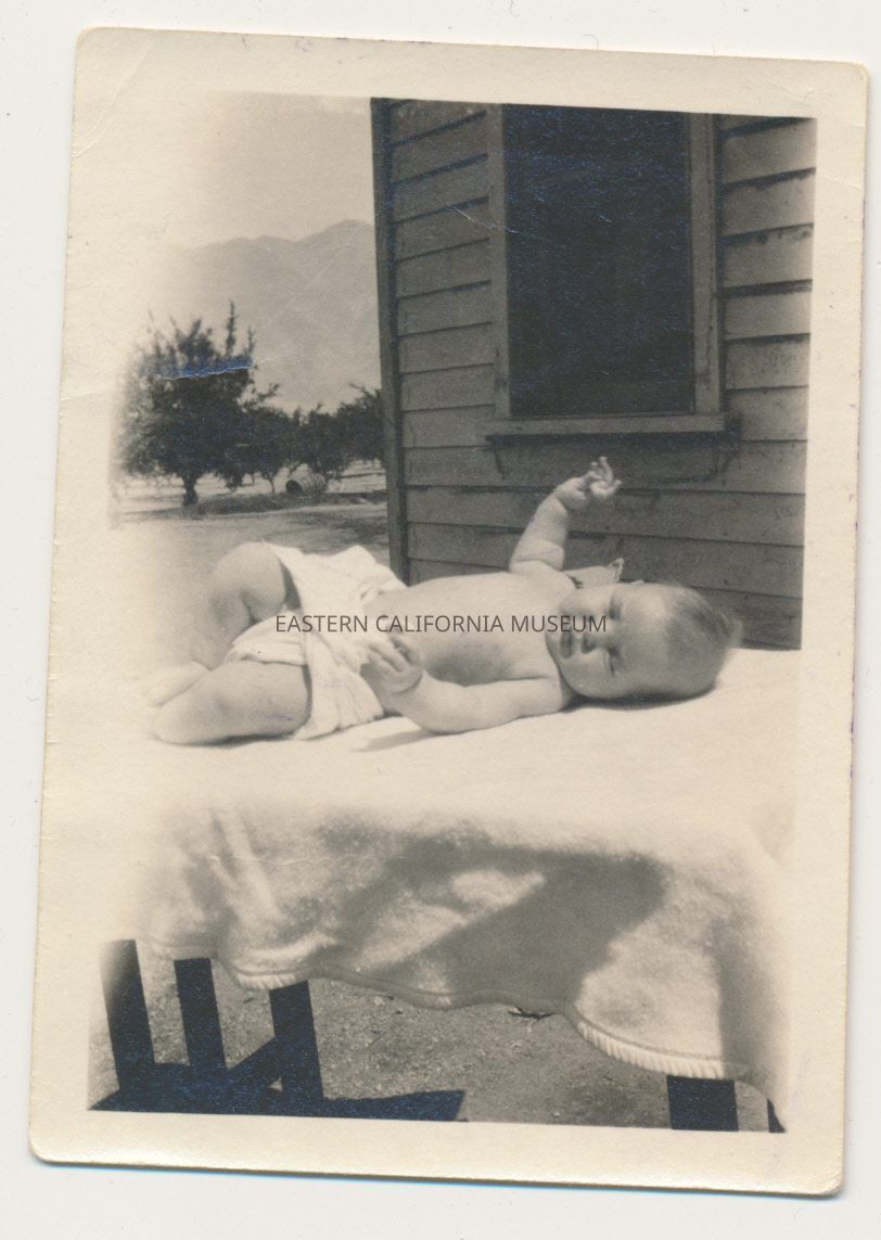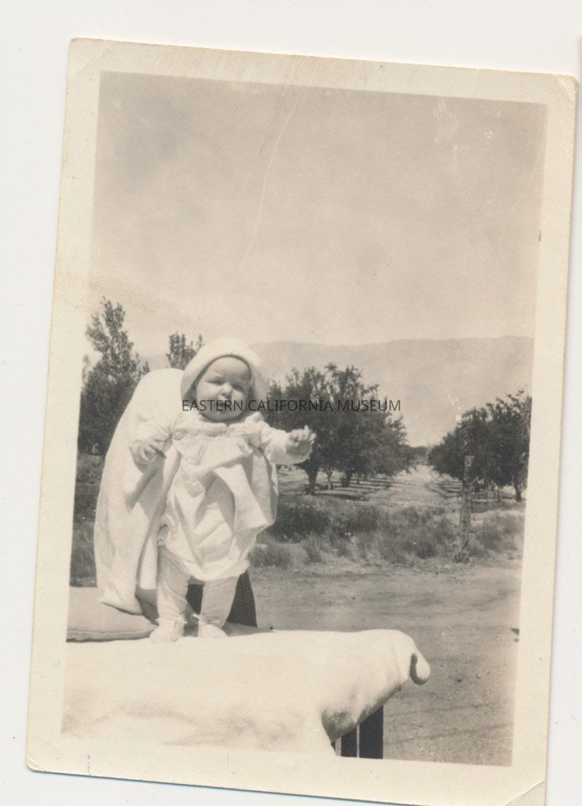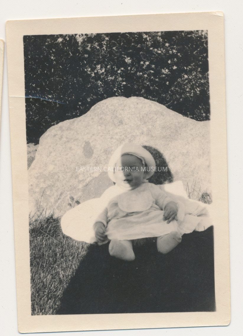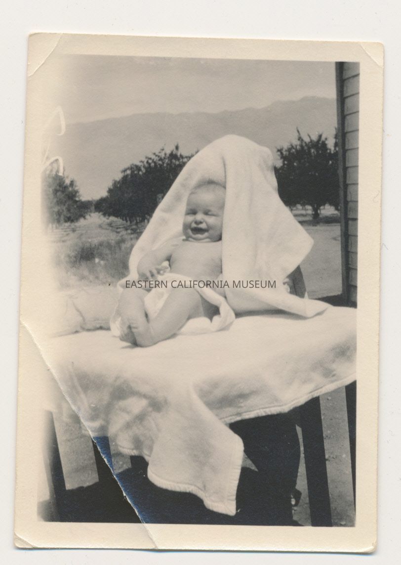 1991.13.1.136--Marvin Donald Smith sitting on newspapers, 1925, Gernigan Ranch.