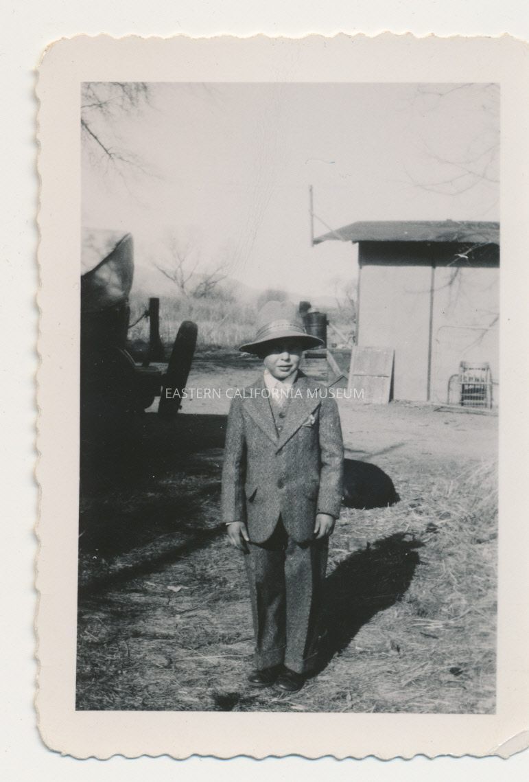1991.13.1.130--Marvin Donald Smith as a little boy wearing a suit, tie, and hat.