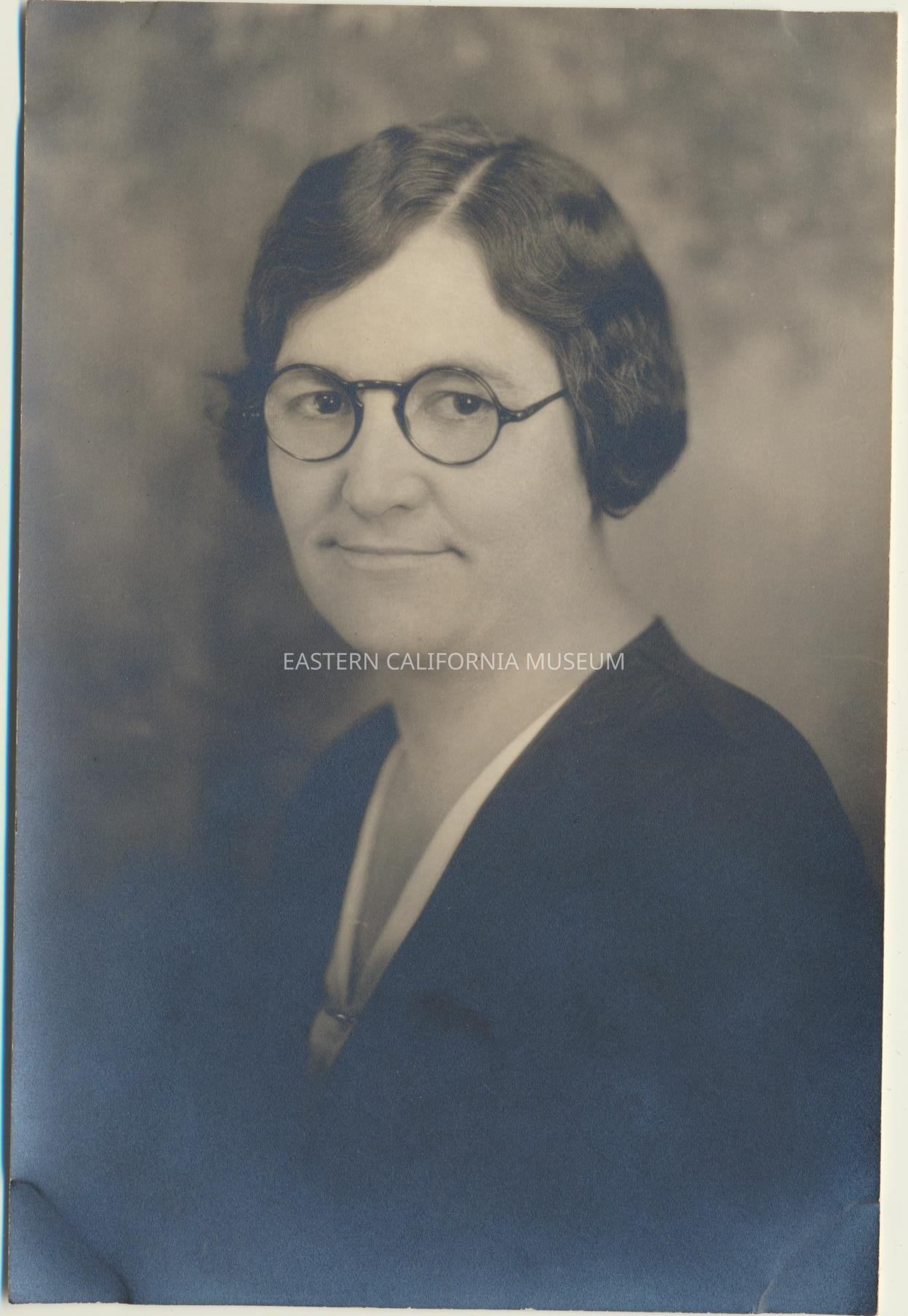 Studio portrait of Mamie Reynolds wearing glasses.