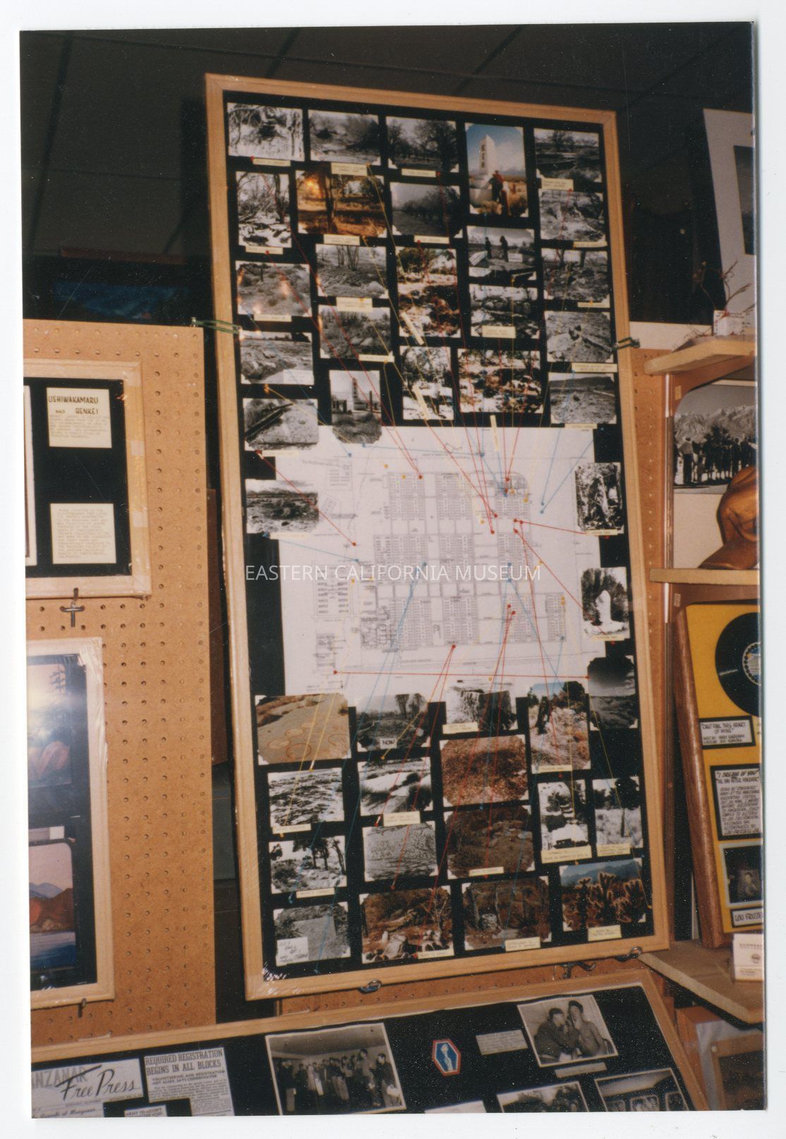 Color photo of one of Shi Nomura's display panels in the Manzanar Exhibit at the museum. It is 1994.80.55. This copy was printed in September 1985.