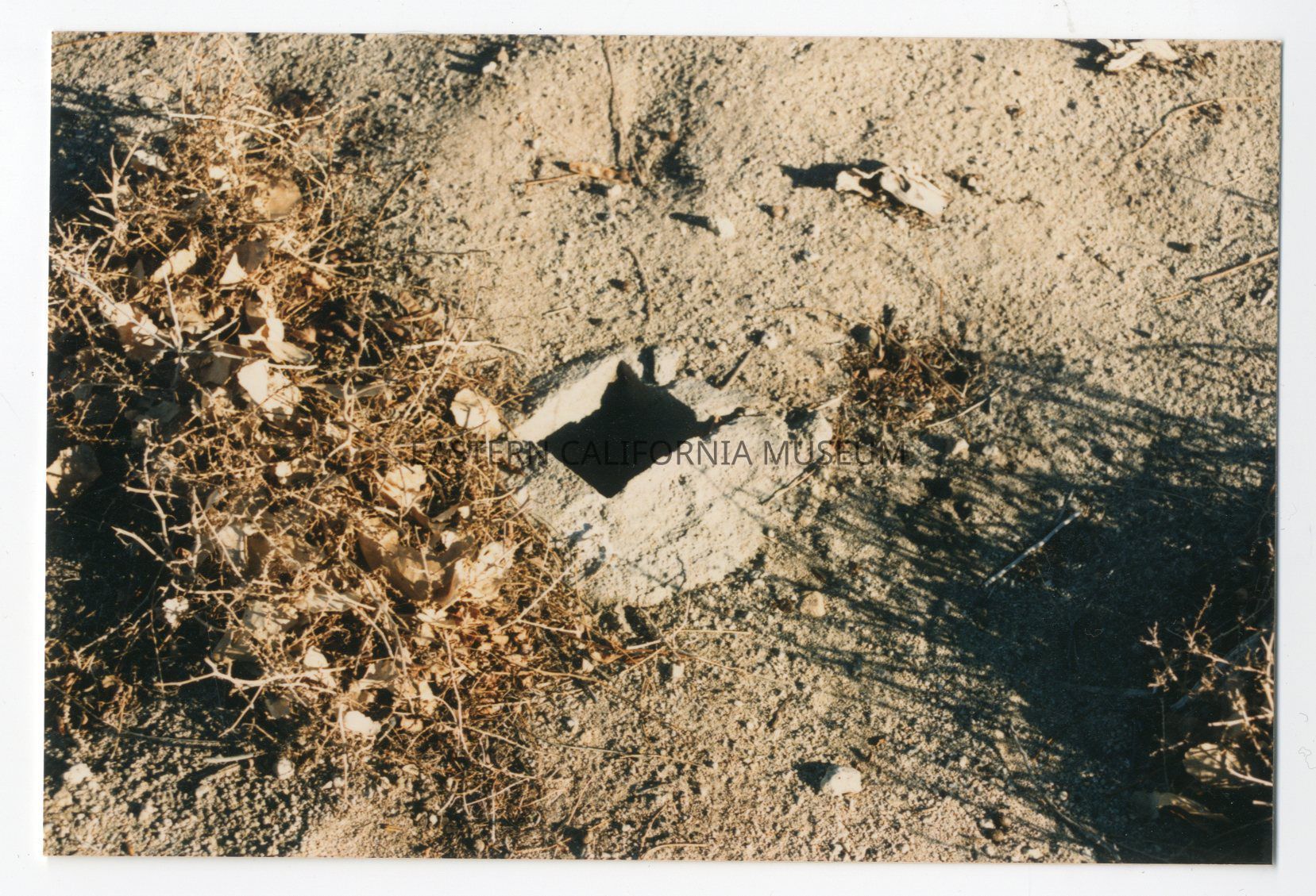 Color photo of a square hole in concrete. This copy was printed in January 1986.