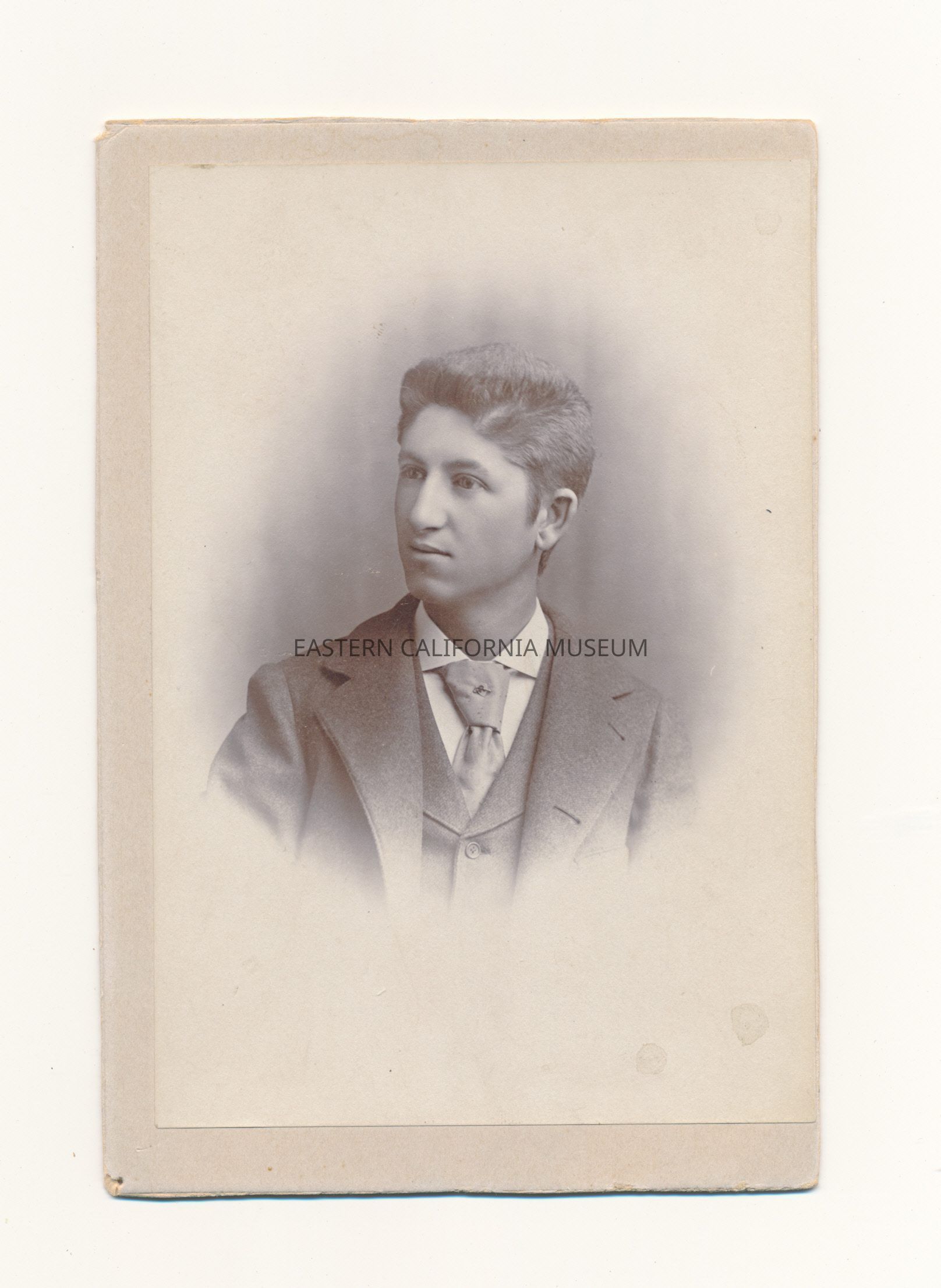 Mounted studio portrait of Charlie Meroney. He was the County Clerk and Recorder of Inyo County 1900-19??.