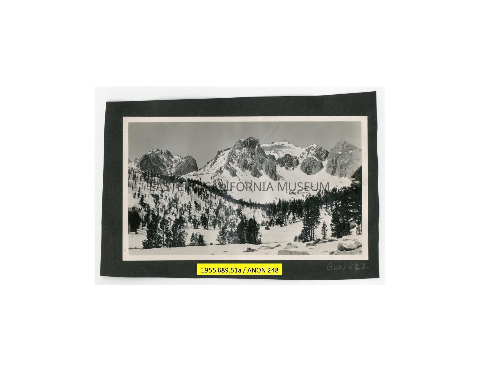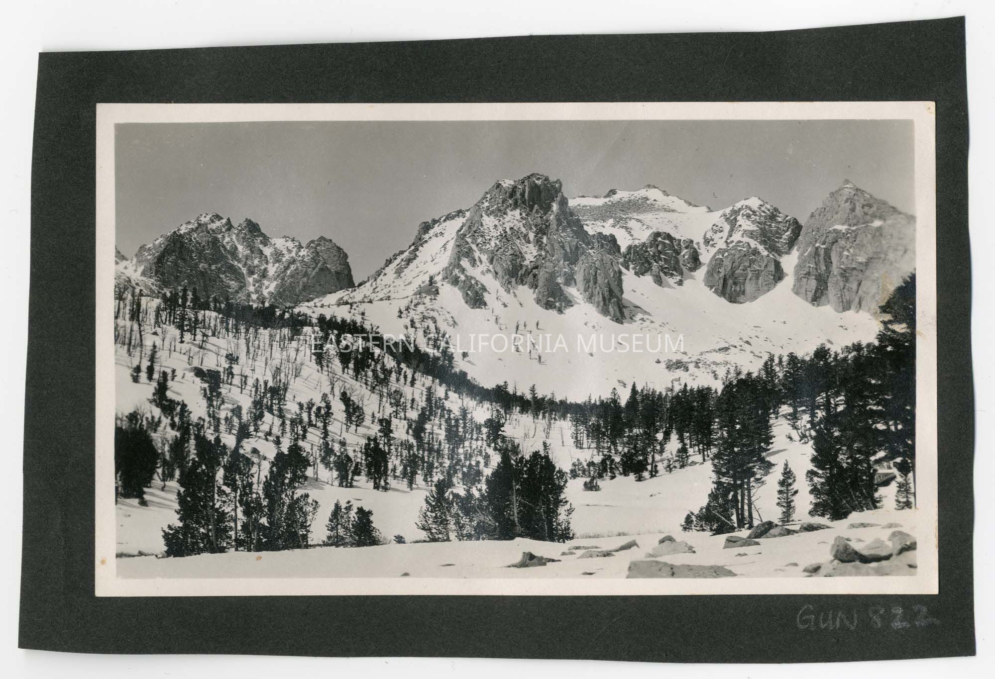 Photo of a snowy mountain landscape. The locations has been identified as Gilbert Lake.
