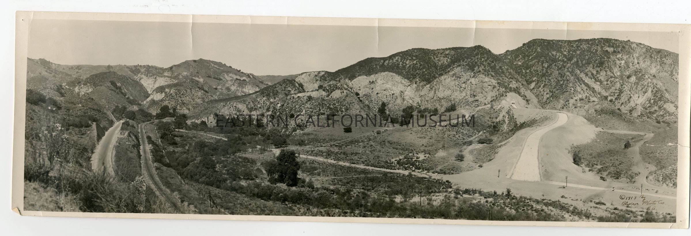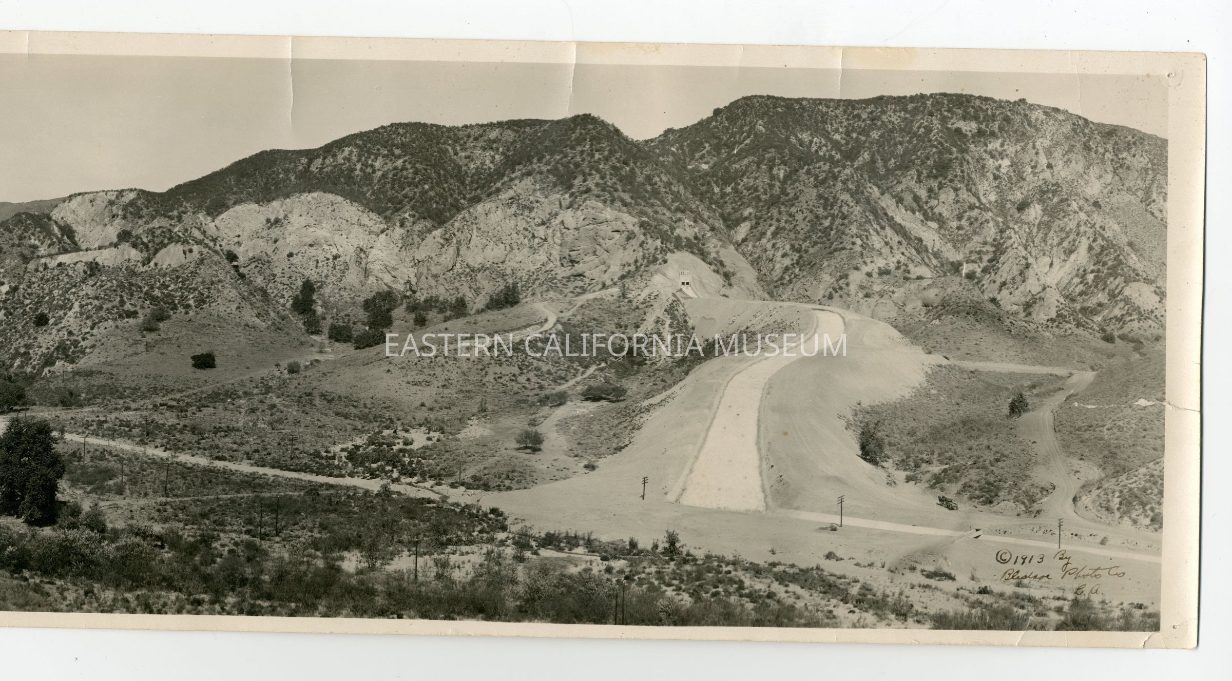 Panorama photo of the spillway at the Cascades taken by Bledsoe Photo Co. in 1913. It shows water rushing down the spillway, but there is no crowd watching. Maybe it was taken later in the day of the aqueduct dedication ceremony on November 5, 1913?Collection
