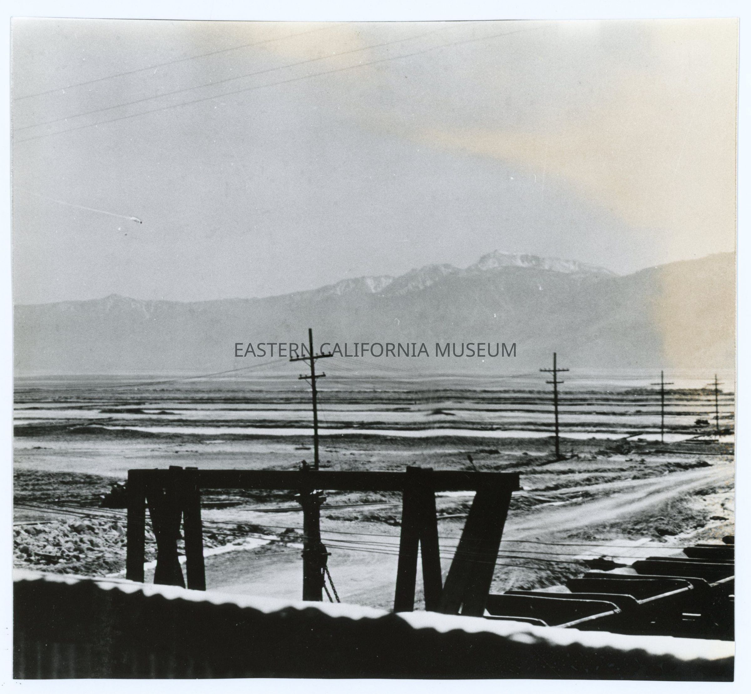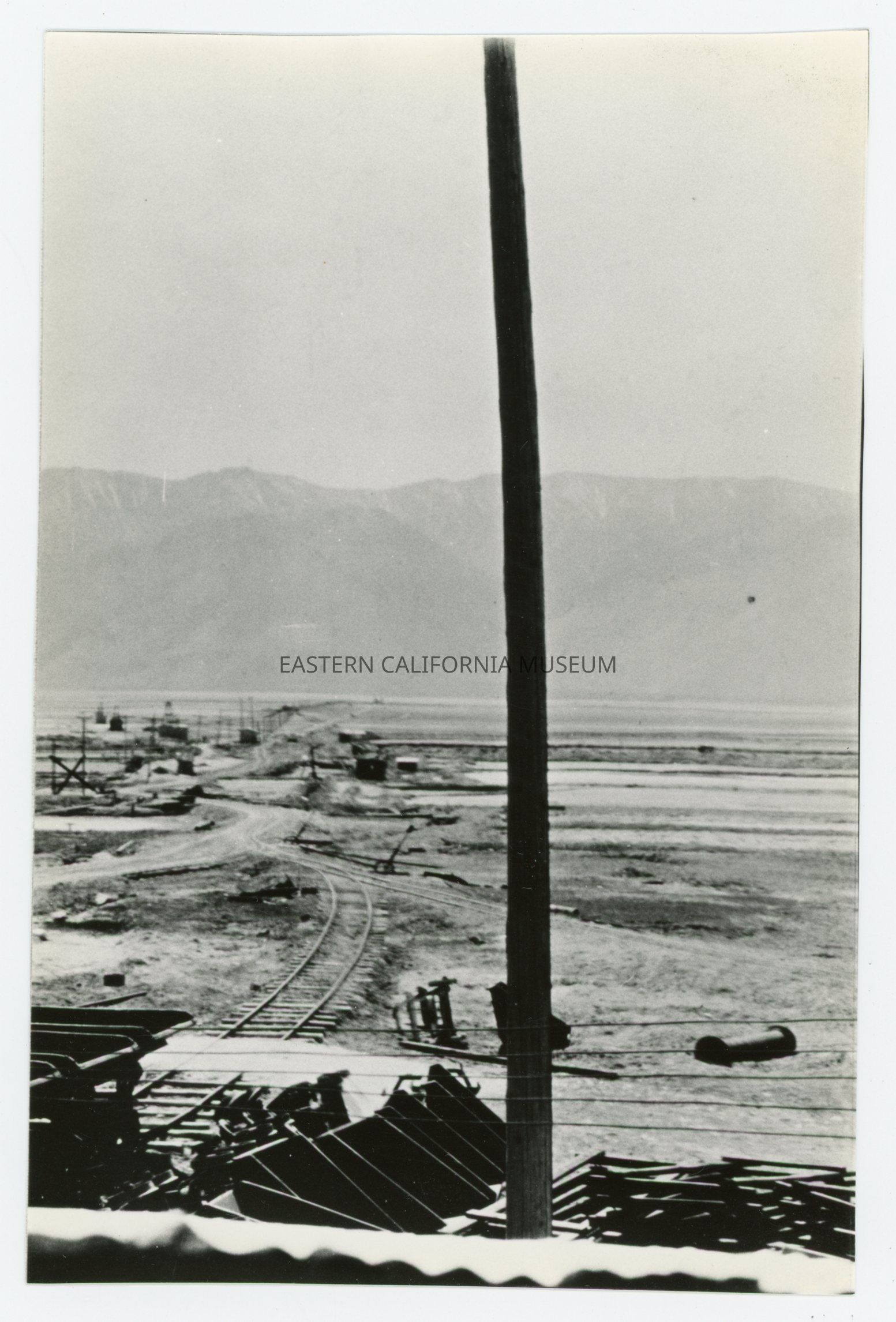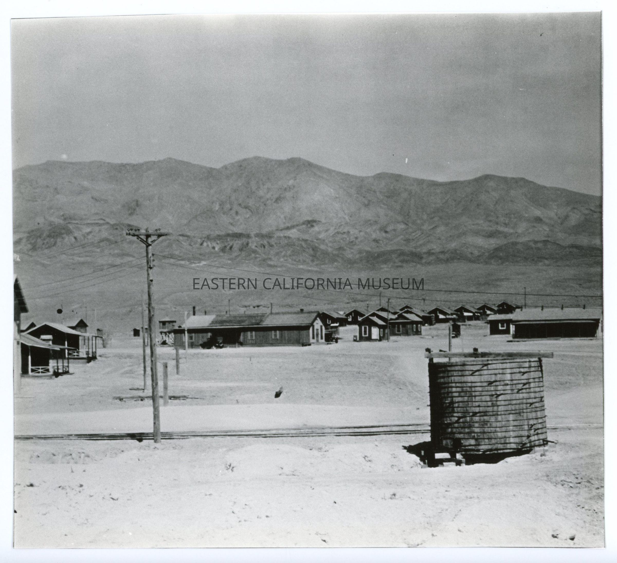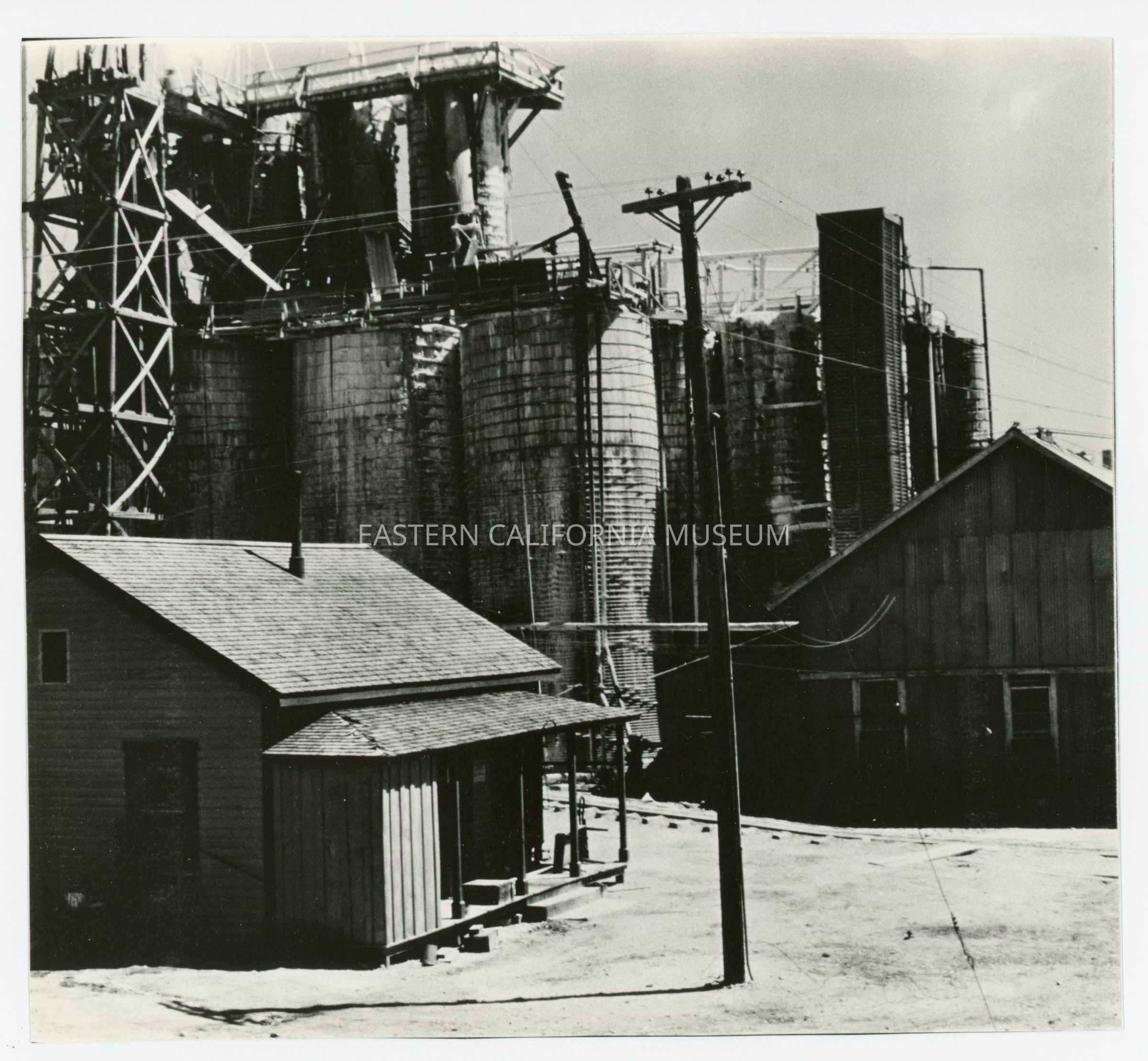 Eight individual prints that together form a panorama photo of the Natural Soda Products (NSP) plant near Keeler, CA. Original photo likely taken in the 1920s or 1930s and the photographer may have been Edwin W. Johnson (or Edwin W. Johnson, Jr.).Collection