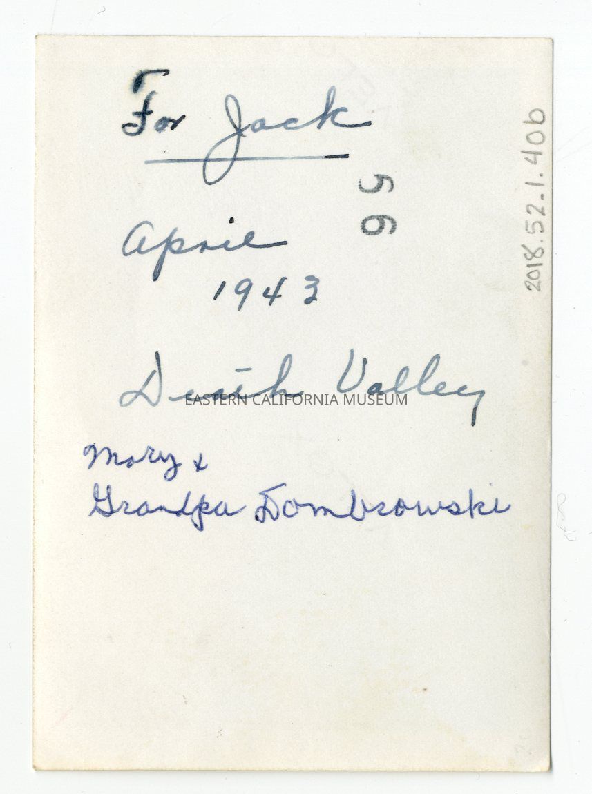 Written in ink on reverse: For Jack, April 1943, Death Valley. Mary + Grandpa Dombrowski.Photograph Details