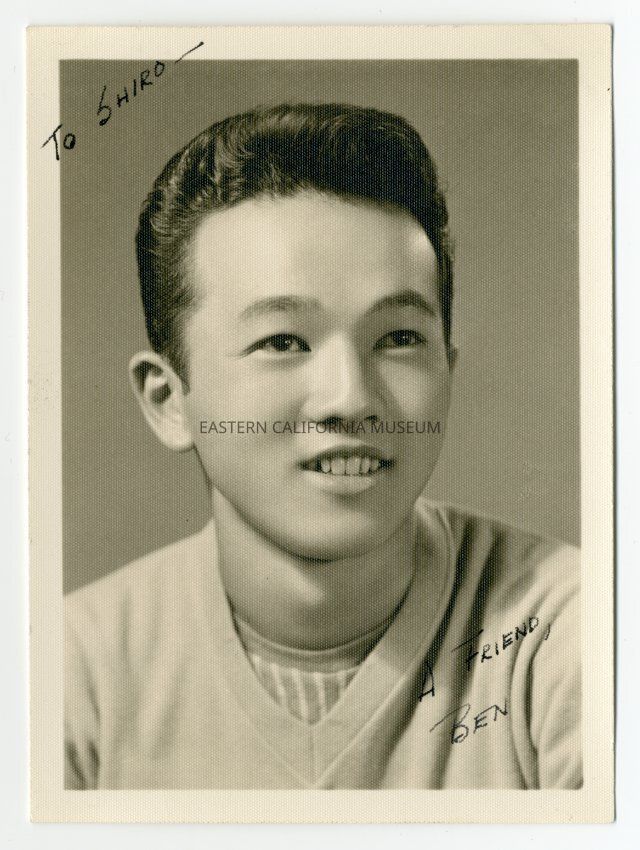 Studio portrait of Ban Yamada. Written on the front of photo: "To Shiro, A Friend, Ben". Label identifies him as: "Ben Yamada, Terminal Island."Collection