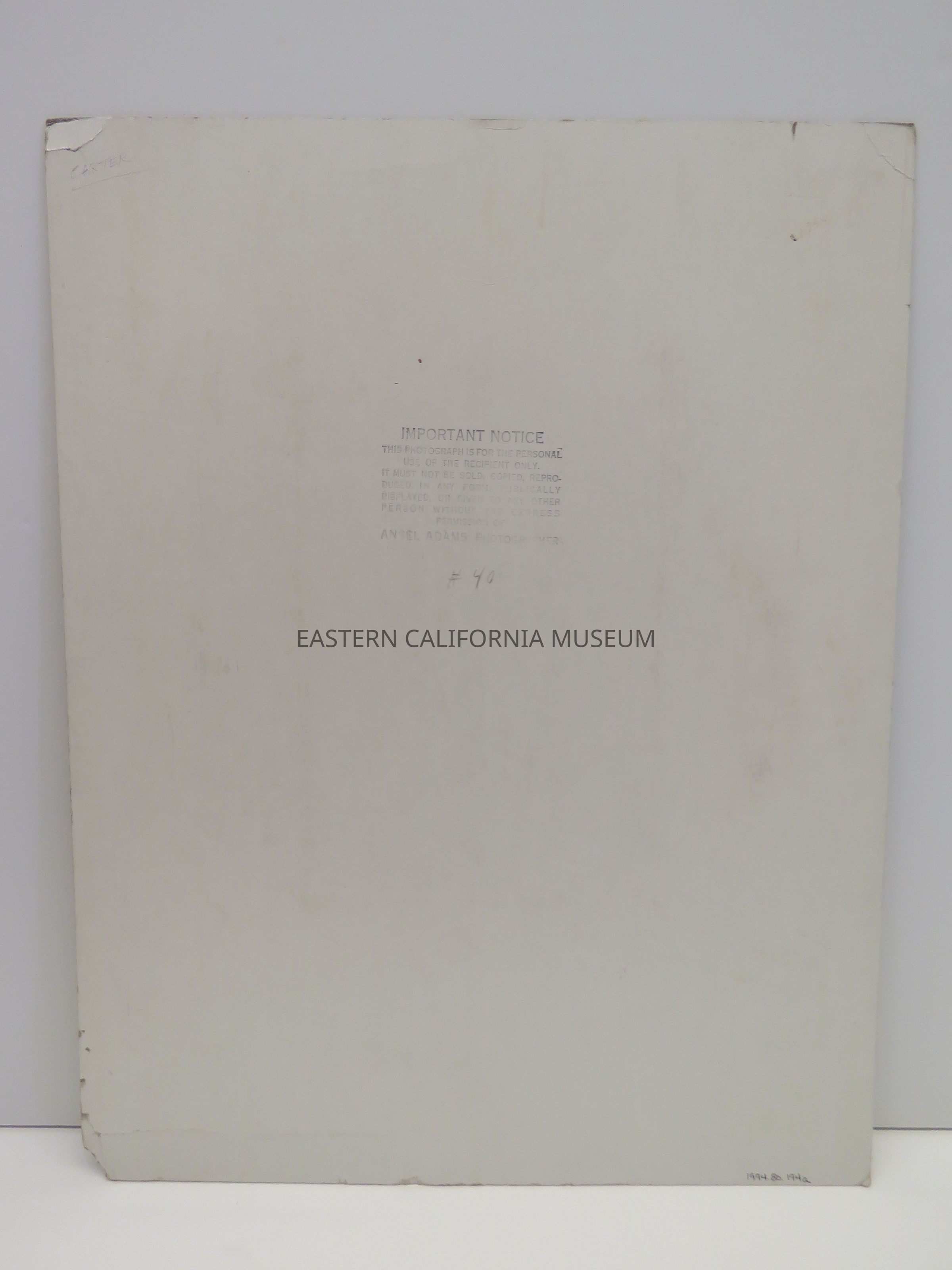Stamped on reverse with, "Important notice, this photograph is for the personal use of the recipient only. It must not be sold, copied, reproduced in any form, publicly displayed, or given to any other person without the express permission of Ansel Adams, Photographer."