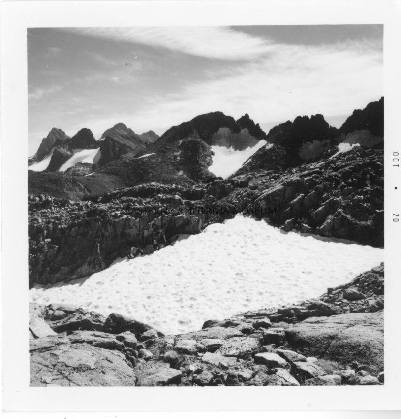 Backside text reads: glaciers and crest of Ritter Range - Minarets Wilderness