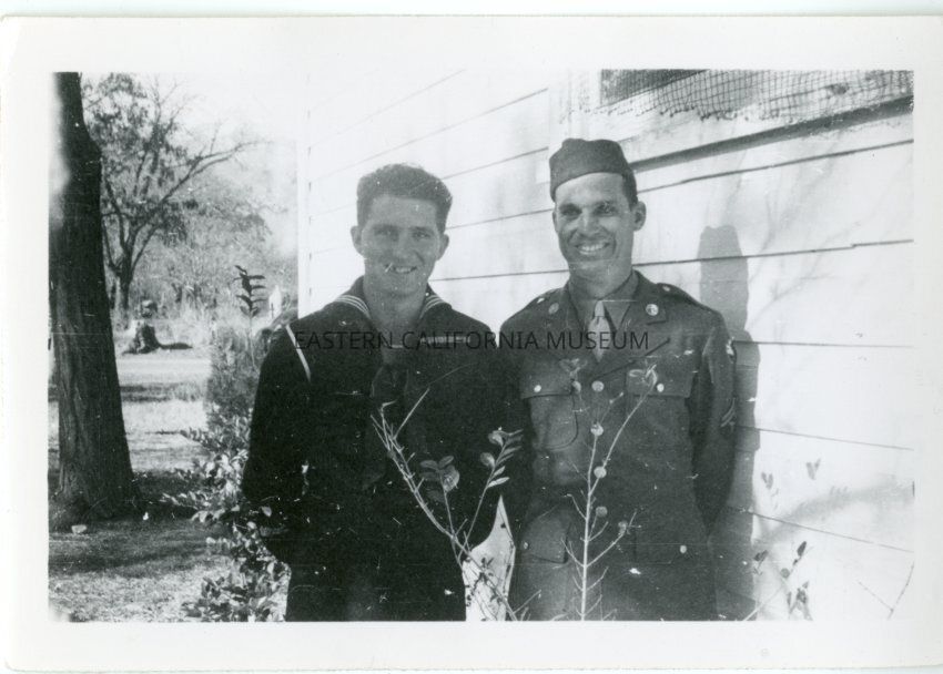 B&W glossy print: 2 men in military uniforms