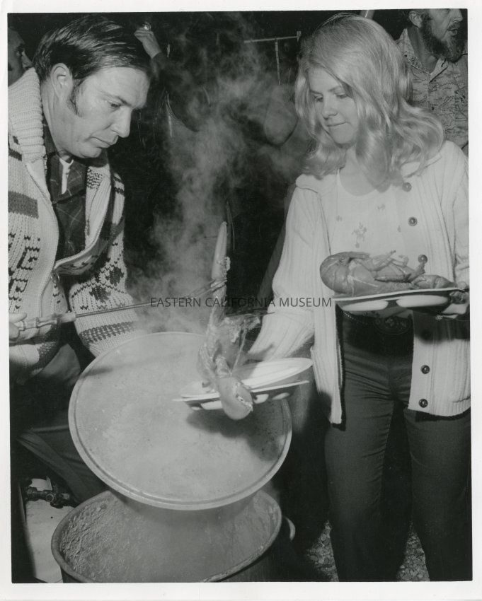 B&W glossy print: man & woman cooking lobster