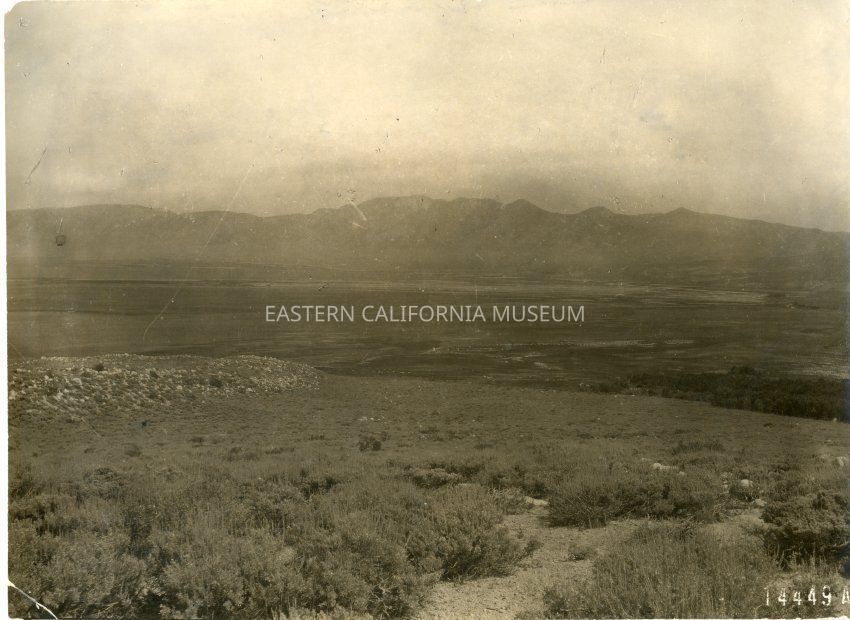 Sepia glossy print: valley floor with mountains in the distance