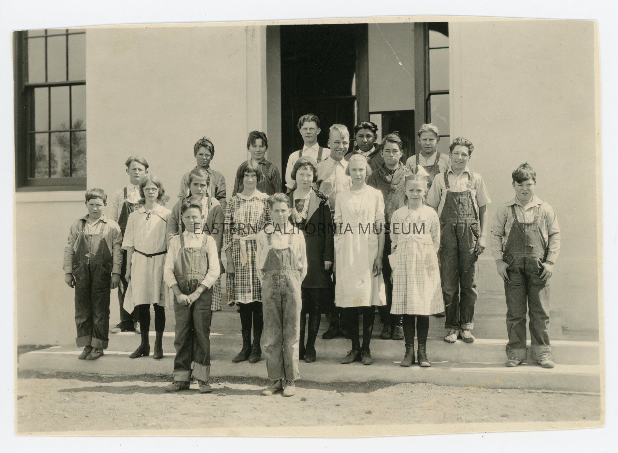 Photo of students standing on the steps of the Independence School house.