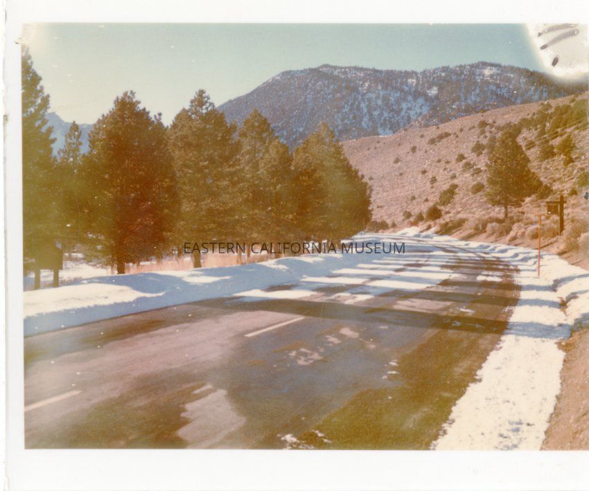Color glossy print: polaroid print? paved road with snowy sides