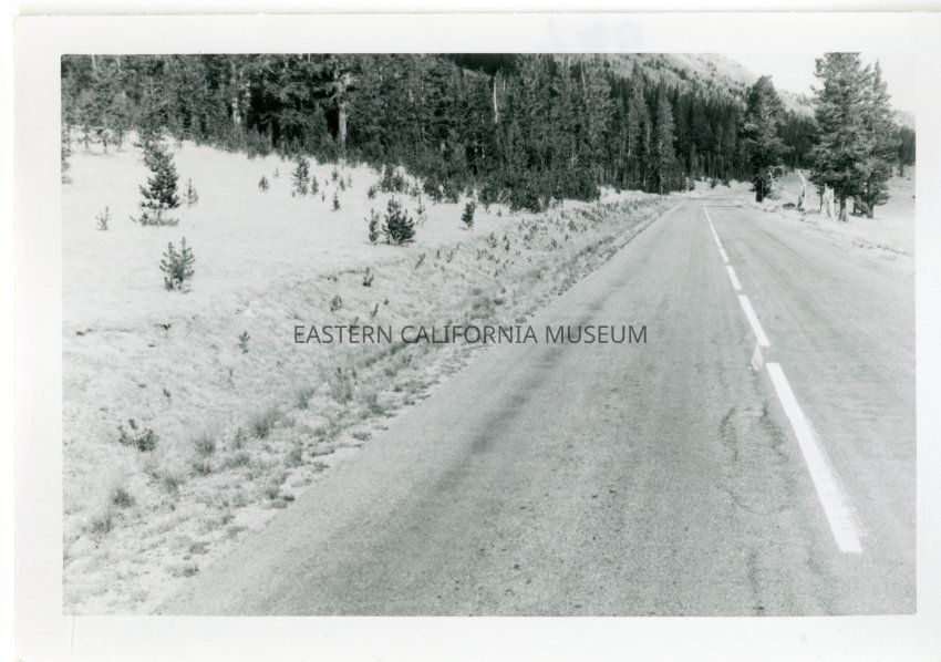 B&W glossy print: paved road with center stripe; in with other Tioga Pass Road photos