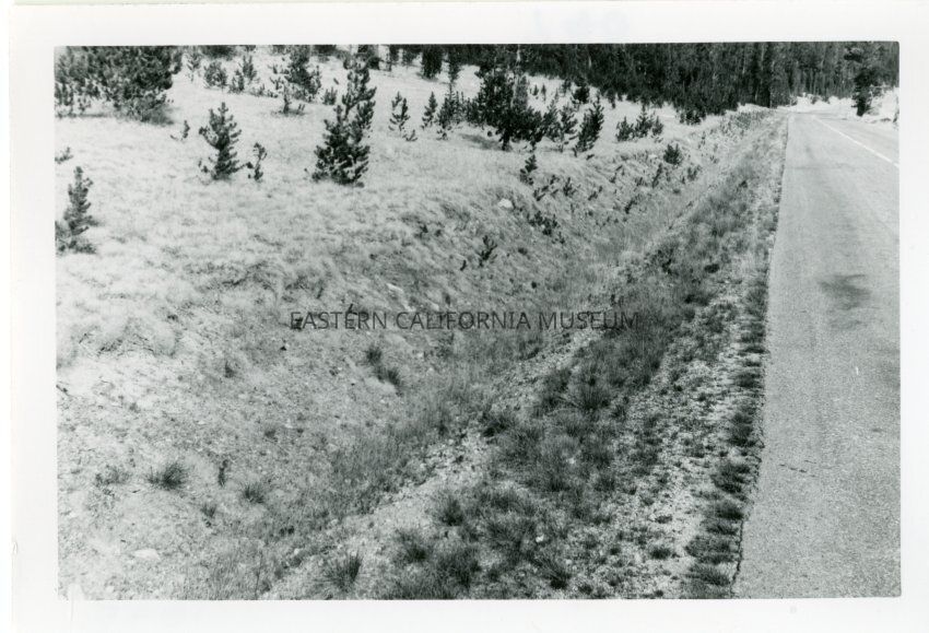 B&W glossy print: shoulder of paved road; in with other Tioga Pass Road photos