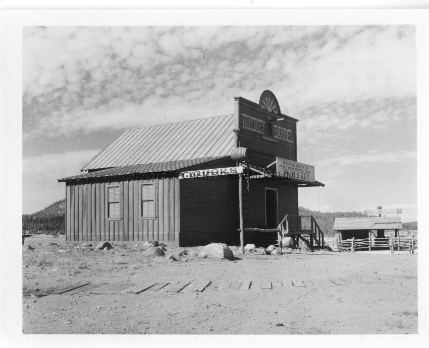 B&W glossy print: unidentified Western cowboy movie set in the Mammoth Lakes area, West of highway 395
