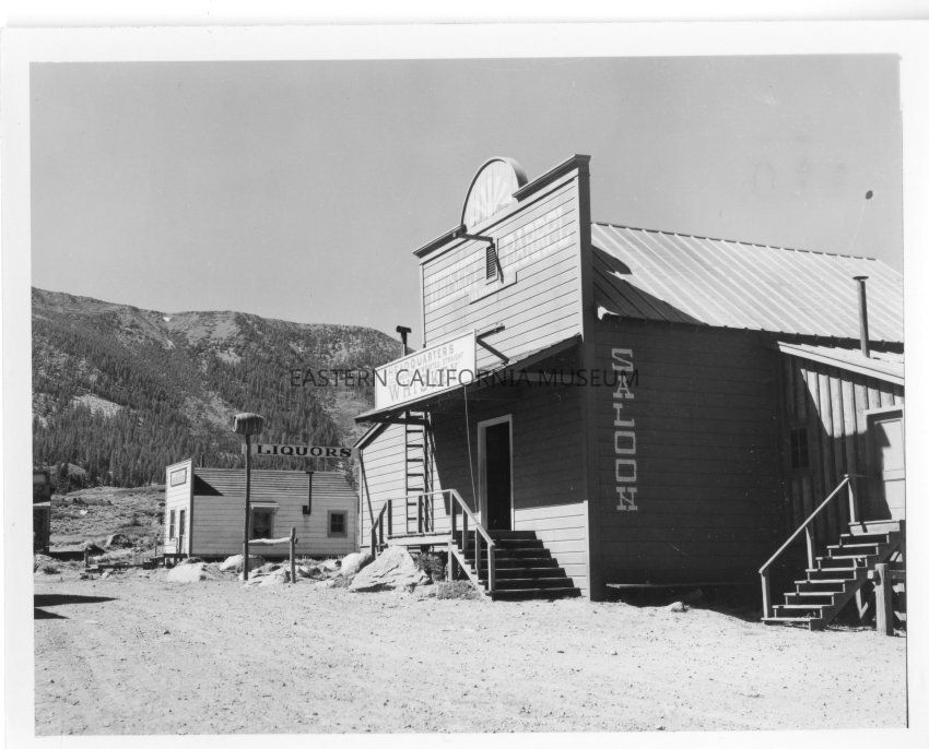B&W glossy print: unidentified cowboy Western movie set in the Mammoth Lakes area, West of highway 395