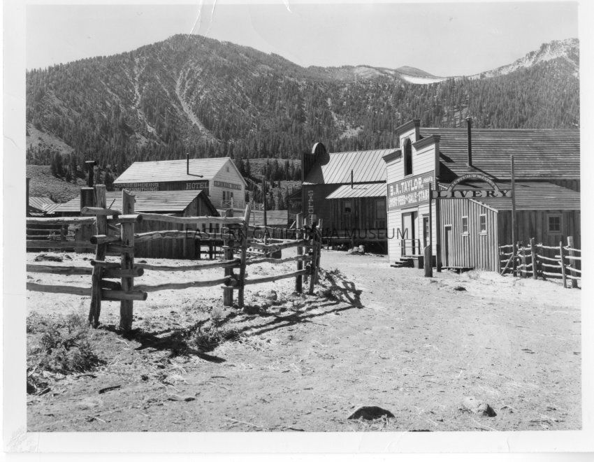 B&W glossy print: unidentified cowboy Western movie set in the Mammoth Lakes area; West of highway 395