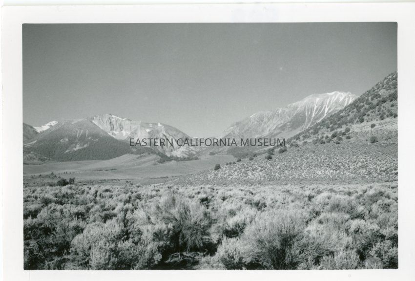 B&W glossy print: sagebrush valley, snow capped peaks
