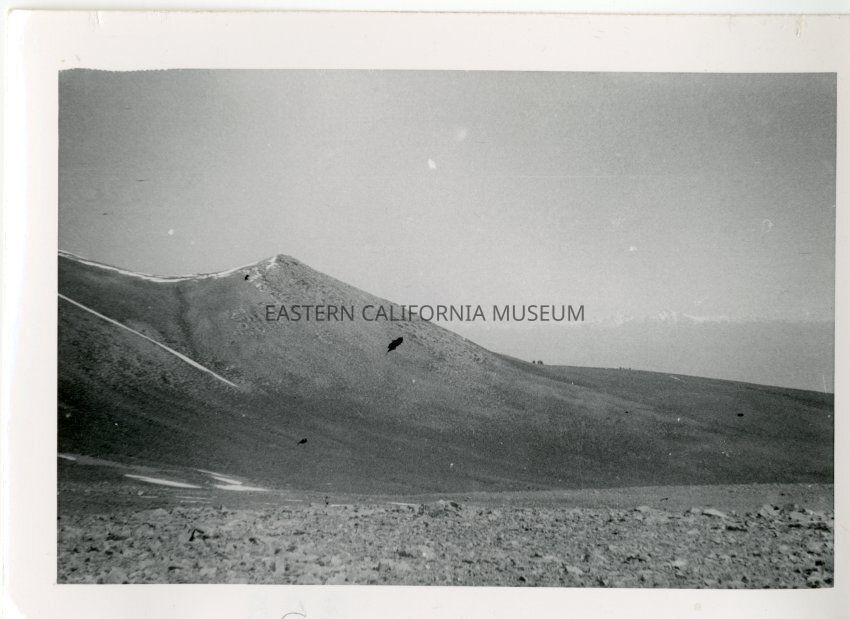 B&W glossy print: rocky slope with treeless peak in background
