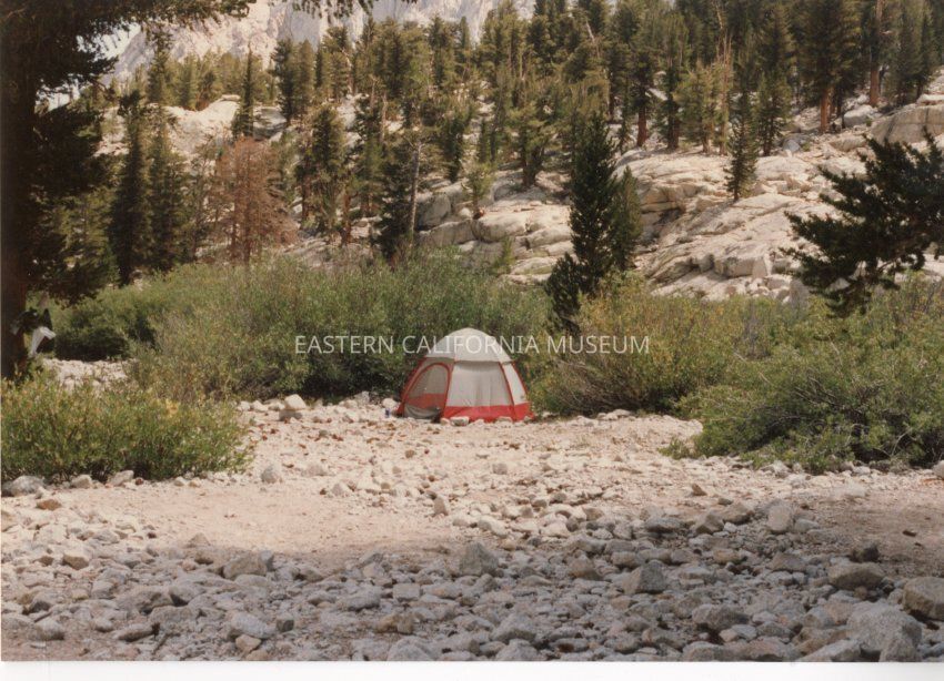 Color matte print: contemporary tent in the middle of a rocky campsite: part of a series of color prints in this folder