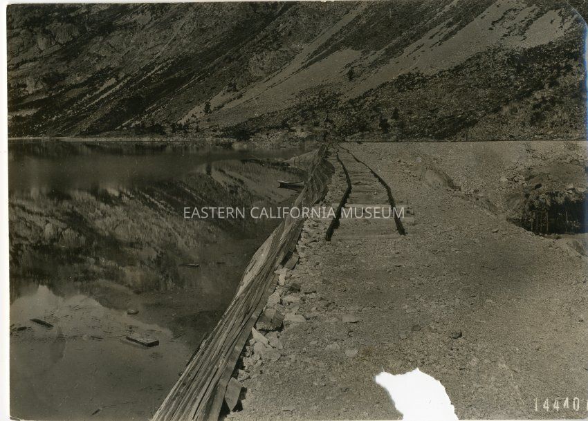 Backside text reads: Inyo N F 7/27/12 Plank facing on damn at outlet_____Nevada California Power leos' Reservoir _ or Sabrina Lake