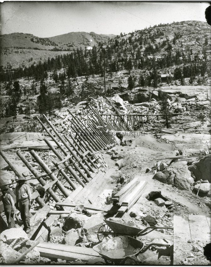 B&W glossy print: 2 men at damn construction site FOLDER: Power Projects