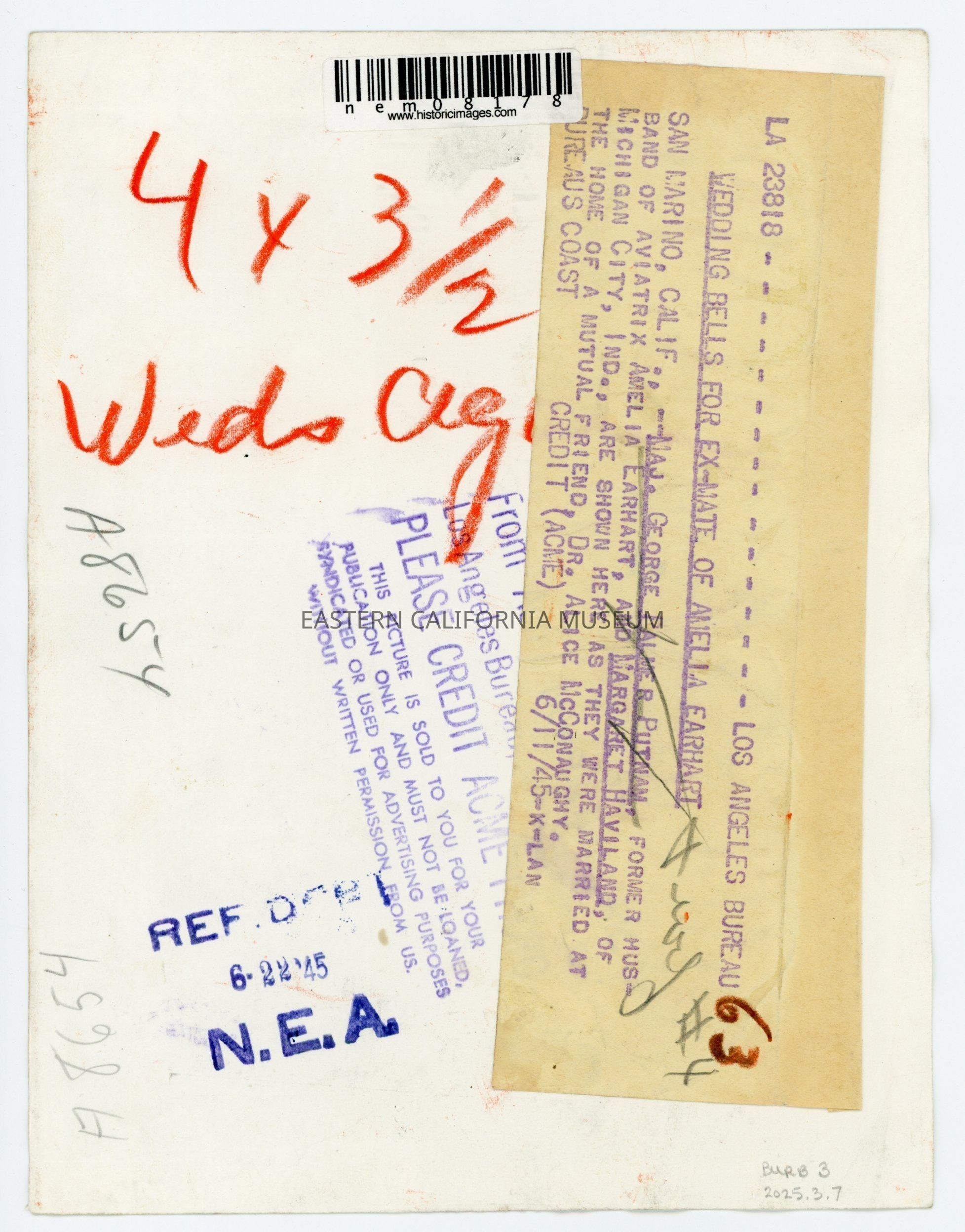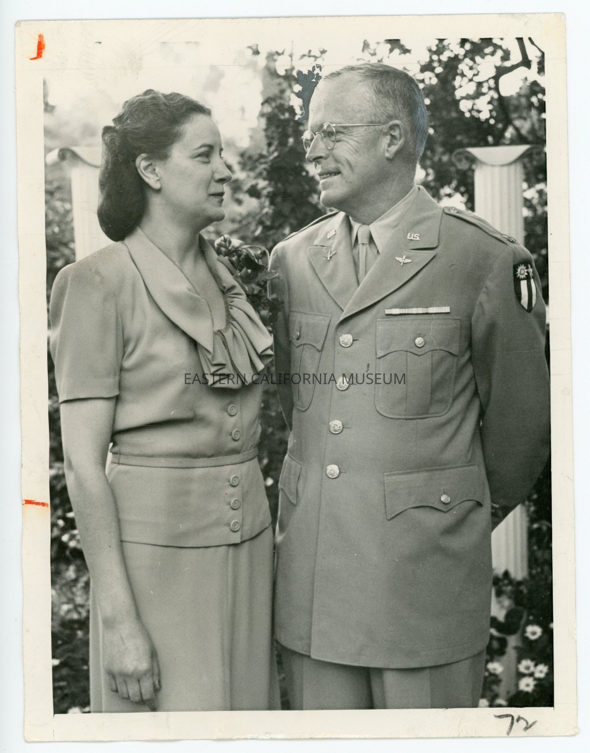Photo of George Palmer Putnam with his wife, Margaret Haviland, on 06/11/1945. Publisher’s blurb affixed to reverse, also stamped with credit information.Collection