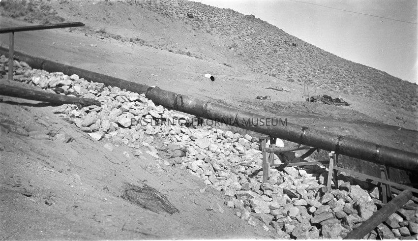 B & W digital scan of LADWP water pipe possibly associated with the Cottonwood Power Plant.