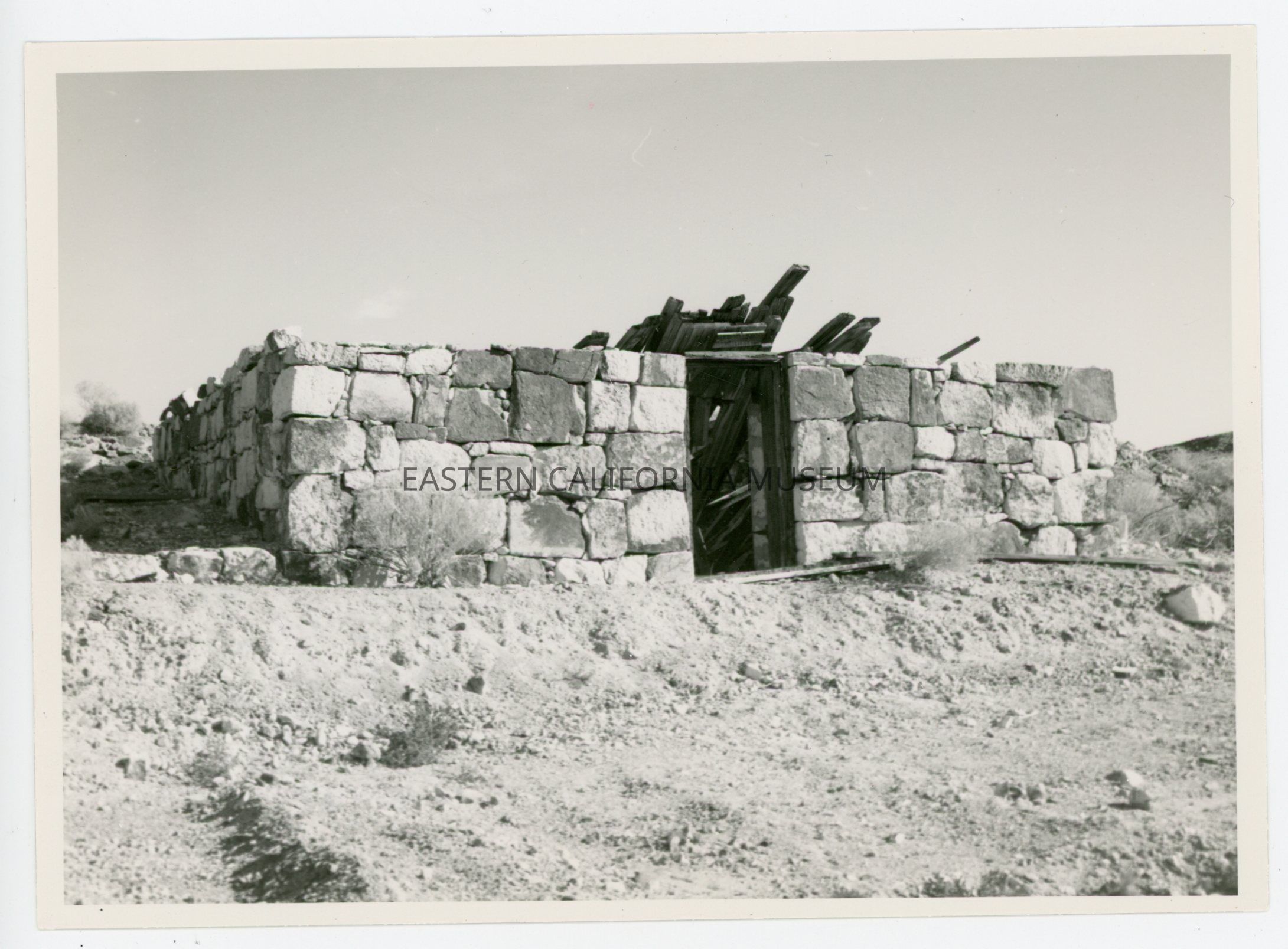 Photo of the remains of the stone Candelaria reservoir #3 pump house taken in December 1963.